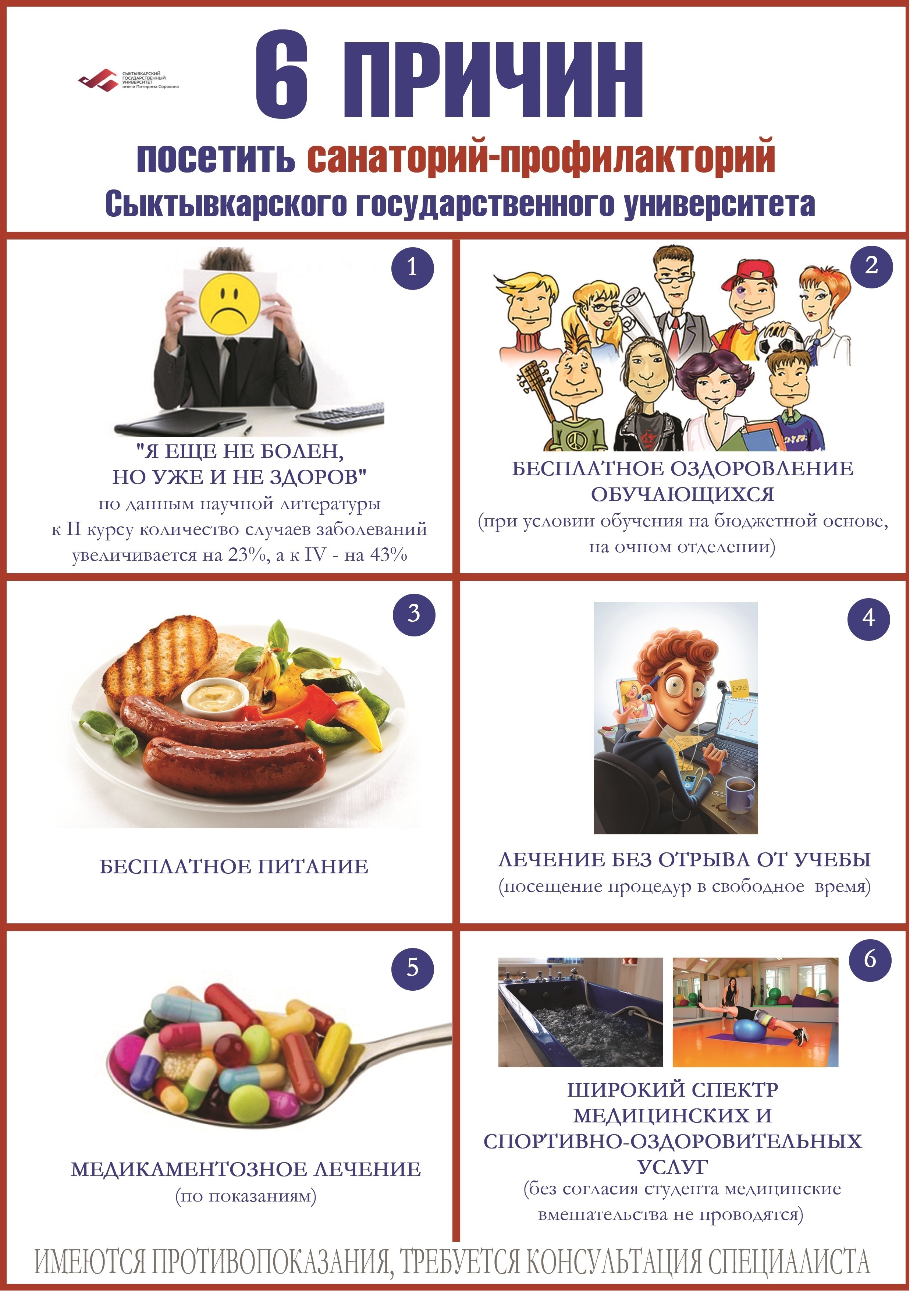 Информация по формам оздоровления для студентов очной формы обучения на бюджете в санатории-профилактории СГУ.