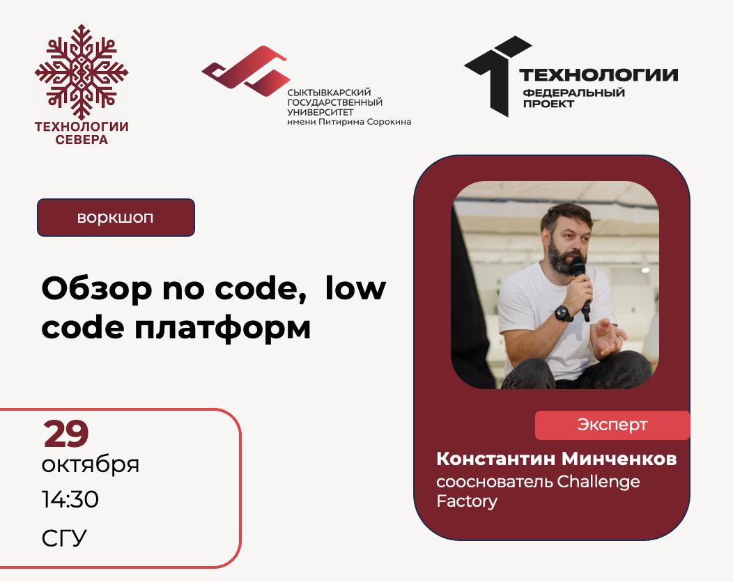 29 октября в 14.30 в рамках акселерационной программы «Технологии Севера» состоится воркшоп "Обзор no code, low code платформ".