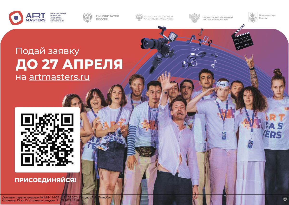На базе департамента государственной молодежной политики и воспитательной деятельности Минобрнауки России пройдет Национальный открытый чемпионат творческих компетенций ArtMasters.