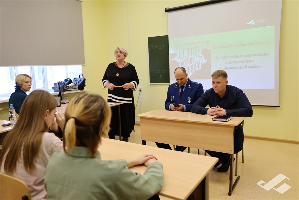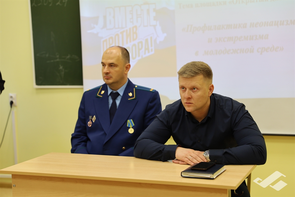 Перед аудиторией выступил помощник прокурора Республики Коми Михаил Григорьев, который отметил, что «экстремизм является крайней формой приверженности к определенным взглядам в политике или религии, которая несет угрозу безопасности населения, а экстремистская идеология представляет собой совокупность взглядов и идей, представляющих насильственные и иные противоправные действия как основное средство разрешения политических, расовых, национальных, религиозных и социальных конфликтов». Тема его выступления касалась неонацизма и экстремизма в молодежной среде, и ответственности, которая ложится на каждого гражданина, проживающего на территории России. В своем выступлении помощник прокурора привел яркие примеры преступлений, совершенных на территории нашей республики.