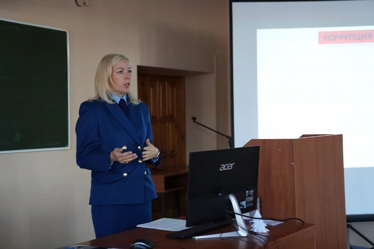 Прокурор Марина Васильева рассказала, какие формы коррупции бывают и какую правовую ответственность несут участники этого правонарушения. Спикер призвала студентов незамедлительно сообщать о преступлениях.