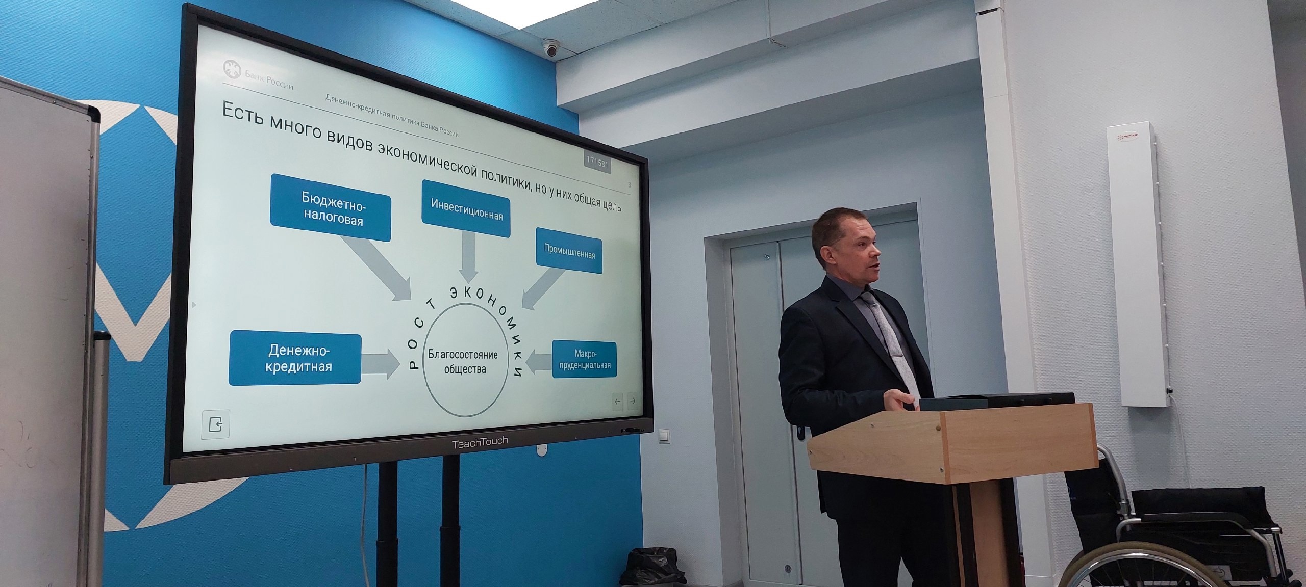 В рамках дисциплины «Экономическая культура» студенты Медицинского института и Института социальных технологий приняли участие в открытой лекции-дискуссии, которую провел начальник экономического отдела Отделения – Национального банка по Республике Коми Северо-Западного главного управления Банка России Павел Докукин.