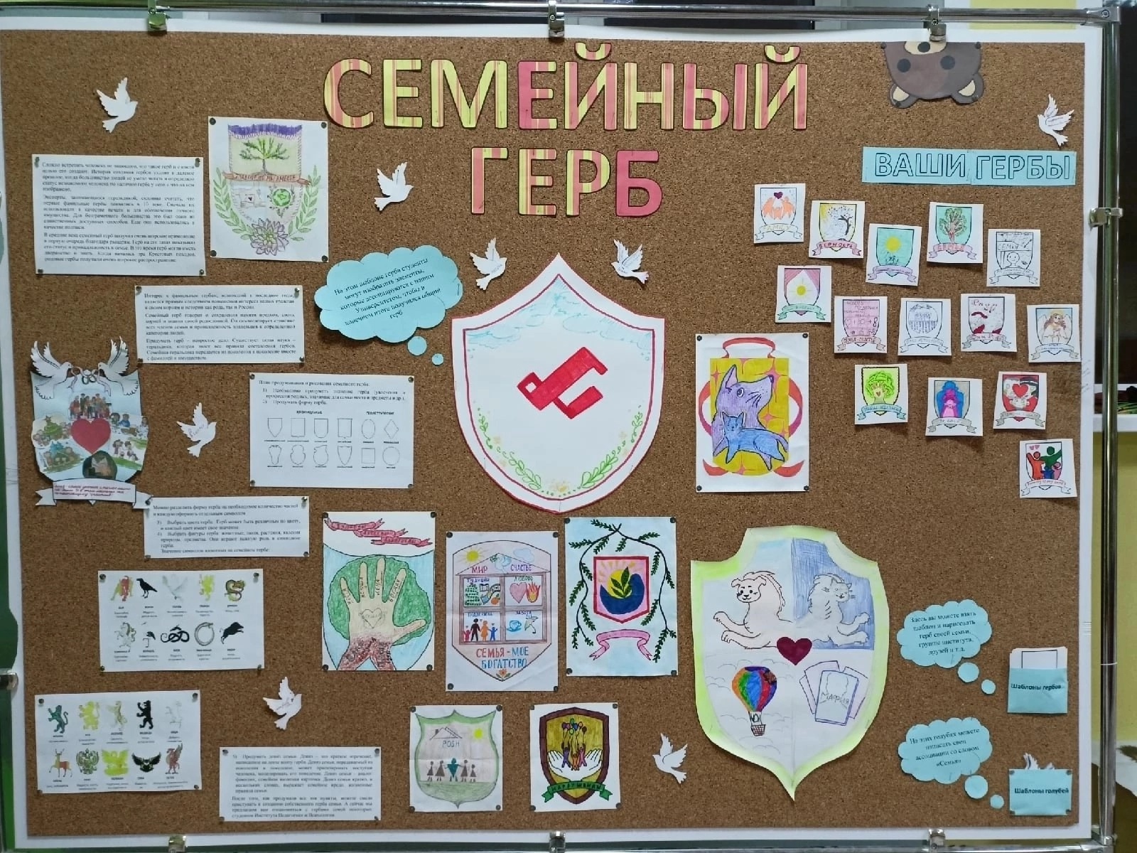 На стенде были представлены различные символы и элементы, которые олицетворяют крепкие узы и уникальные традиции каждой семьи. Каждая деталь герба была продумана с любовью и вниманием. Также здесь можно было найти инструкцию, как оформить собственный герб семьи.