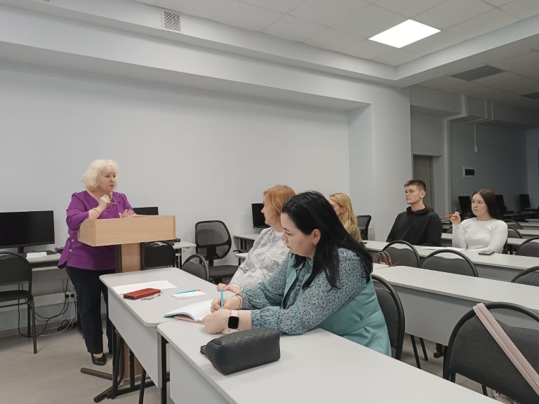 Доцент кафедры социальной работы и психологии Наталья Ушакова показала методику проведения занятия для обучающихся ППК «Личностные качества, способствующие творчеству».