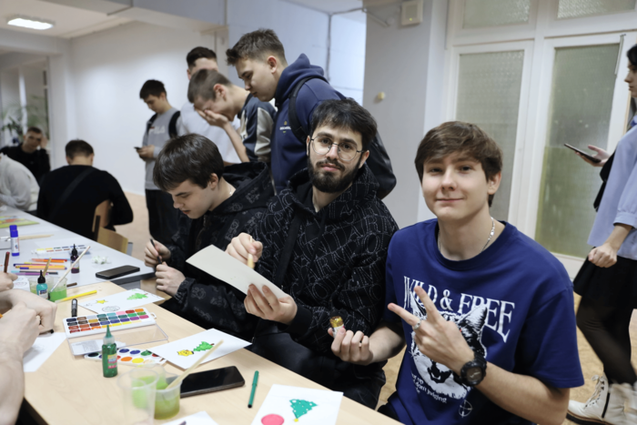 Для участников встречи был подготовлен уголок творчества «Снежная мастерская», где студенты Института культуры и искусства организовали пространство, где участники проявили свою креативность и создали уникальные новогодние открытки для друзей.