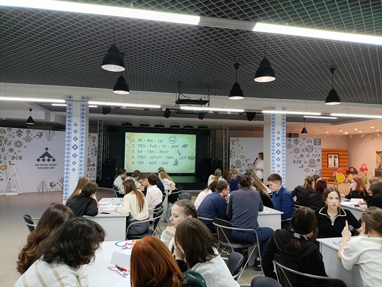 15 февраля в Доме дружбы народов прошёл муниципальный познавательно-развлекательный квиз по немецкому языку «Megakopf» среди учащихся 3-11 классов муниципальных общеобразовательных организаций г. Сыктывкара. Квиз проводился с целью развития языковых и коммуникативных компетенций учащихся и был рассчитан на три возрастные категории: 3-5 классы, 6-8 классы и 9-11 классы. От команд-участников, состоявших из 5-6 человек, ожидалось умение проявить кругозор и нестандартное мышление, применить школьные знания для решения практических задач, а также умение работать в команде, слушать друг друга и принимать общие решения.