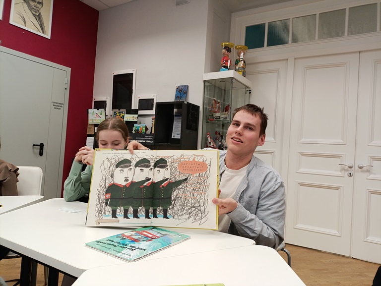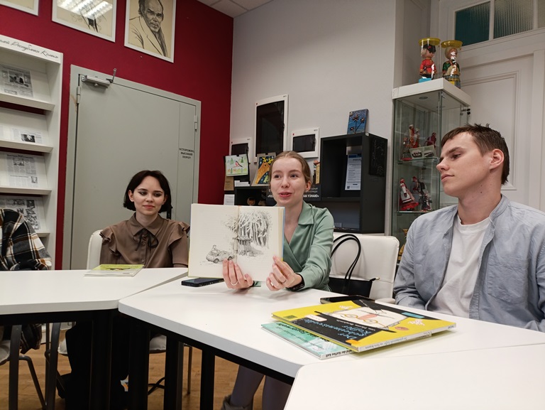 На протяжении всего вечера гости библиотеки делились впечатлениями от прочитанного, цитируя наиболее понравившиеся отрывки из книг, делясь сделанными во время чтения лингвистическими открытиями и восхищаясь иллюстрациями к произведениям.
