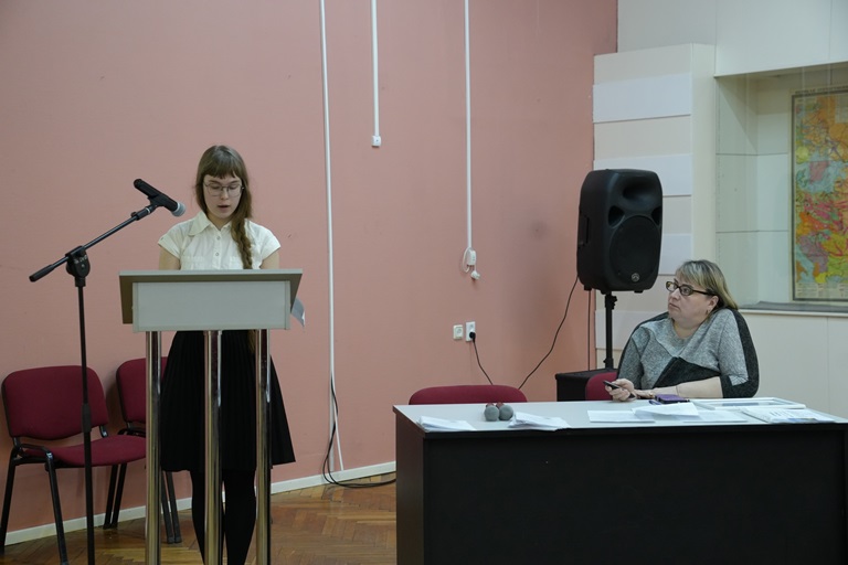 Ученица 7 класса средней школы №36 Сыктывкара (руководитель Ю.Д. Кичун) А. Бабенко выступила с докладом на тему «Социально-демографическая структура села Серегово».