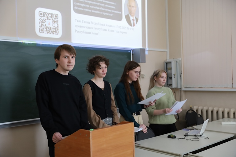 В связи с этим их группа решила организовать просветительский проект, направленный на формирование представлений о вкладе Коми АССР и её героев в победу в Великой Отечественной войне у обучающихся университета.