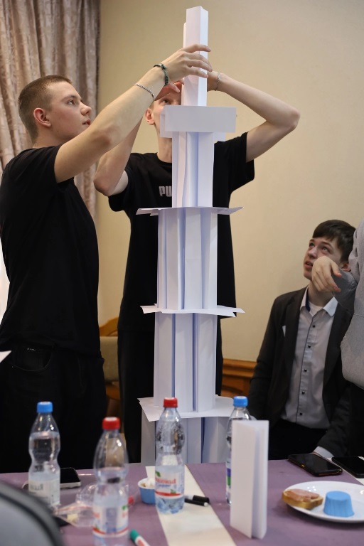 Кульминацией дня стала деловая игра «Башня из бумаги». Студенты разделились на команды и получили задание построить максимально прибыльную башню. Критериями успеха стали высота конструкции, время строительства и эффективность использования ресурсов (каждый лист бумаги имел свою «стоимость»).