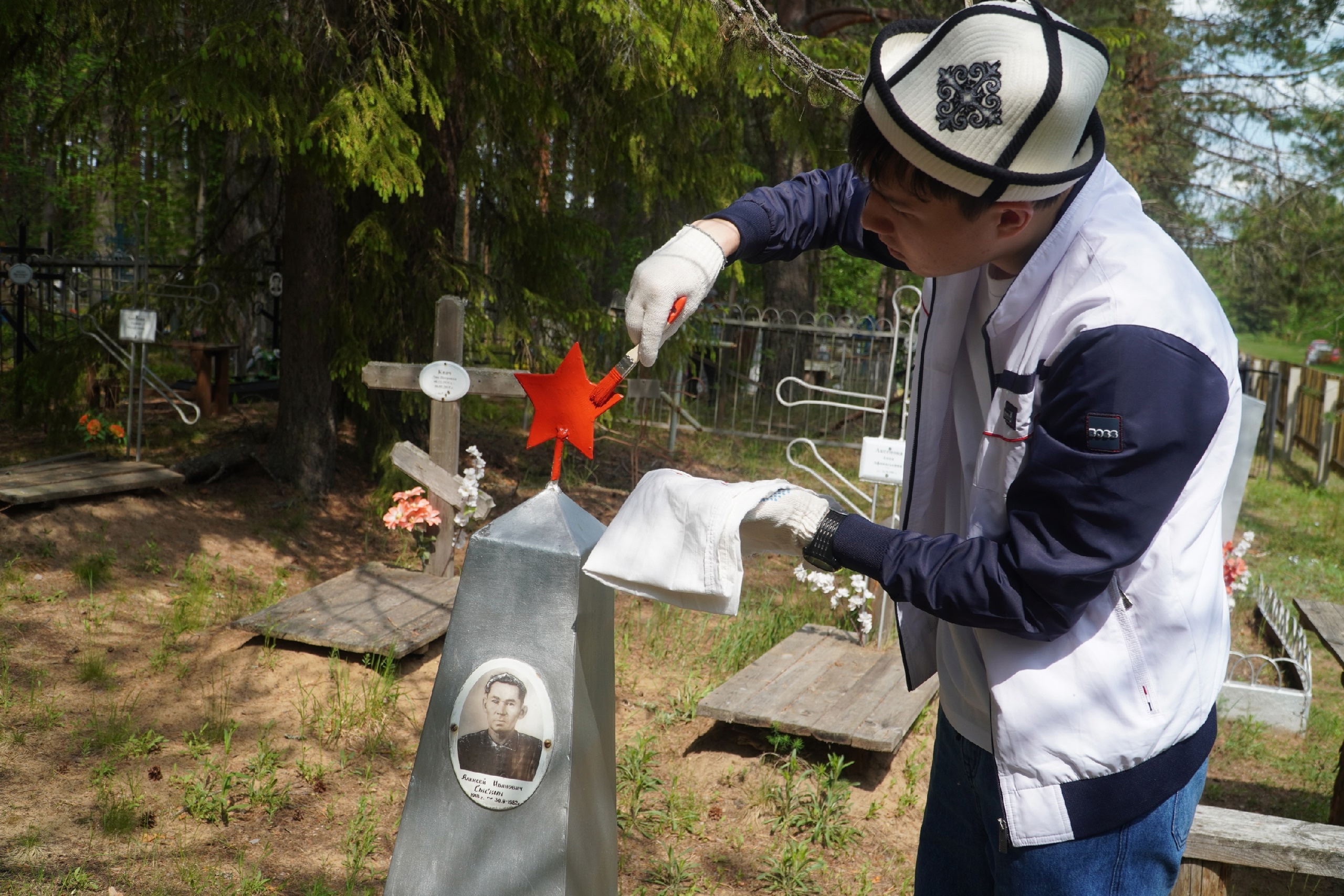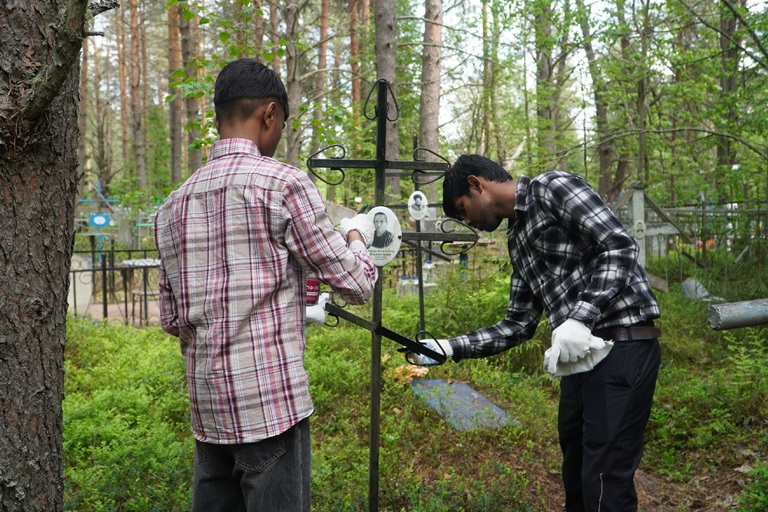 Волонтеры Иван Конев (группа 511-ИРо, Институт истории и права), Аюбхон Олимжанов, Гурмит Сингх и Прабхат Ядав (подготовительное отделение), Анжелика Лавкай (311-СРо, Институт социальных технологий), Ксения Кузнецова (311п-БФо, Институт социальных технологий), Мария Горохова (411п-ПНо), Юлия Дьяконова (411п-ПНо), Вероника Авилова (411п-ПНо) и Сыргабек Анарбаев (412п-ПНо, Институт педагогики и психологии), активно участвовали в с. Межадор Сысольского района 06 июня в мероприятии, направленного на благоустройство и уход за памятниками, связанными с могилами участников Великой Отечественной войны и тружеников тыла.