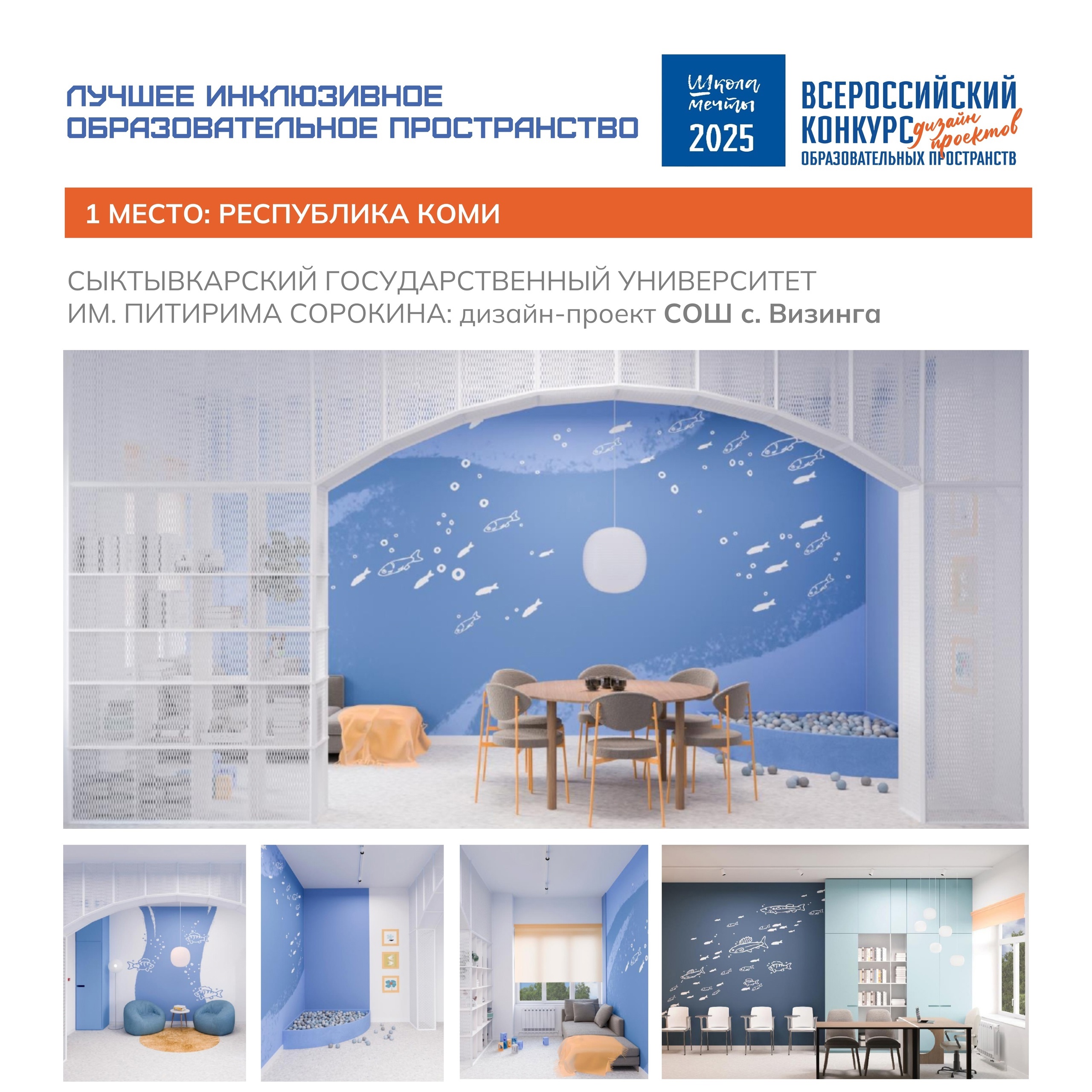 Проект СОШ села Визинга стал победителем в двух номинациях: «Лучшее решение инклюзивного образовательного пространства» и «Лучшее интерьерное решение учительской».