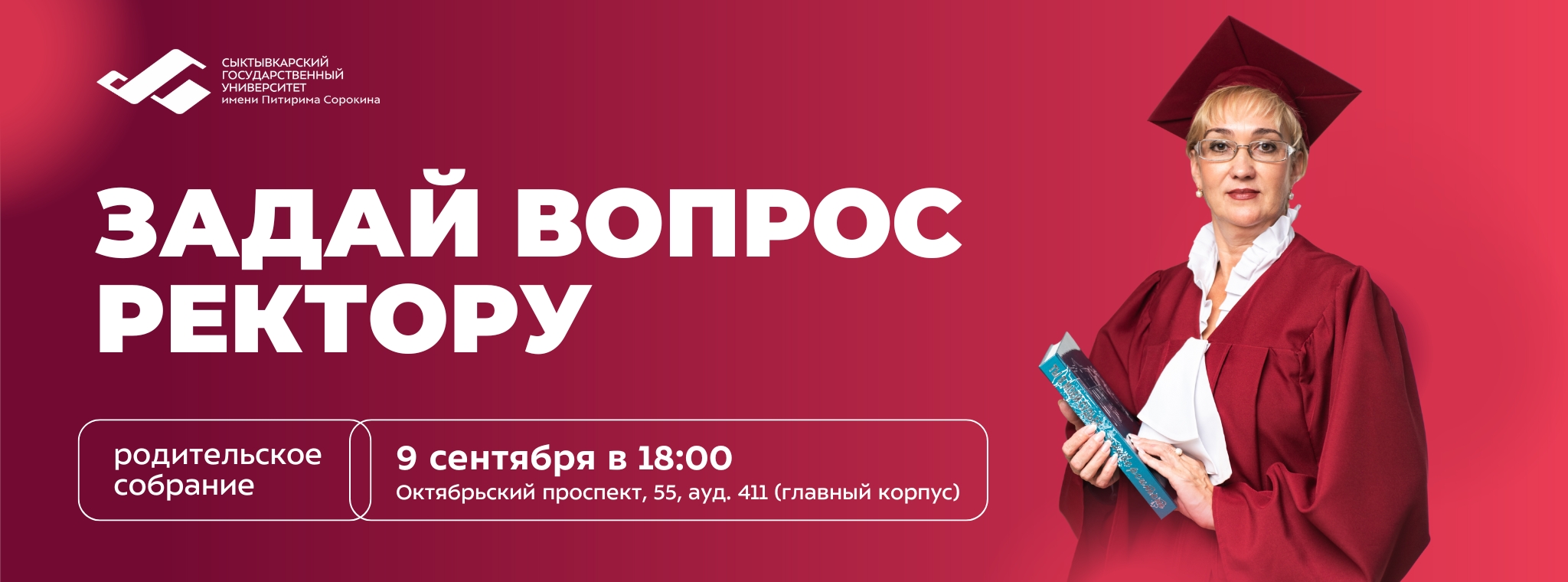 Уважаемые родители наших первокурсников! Приглашаем вас на традиционную и очень важную встречу — общеуниверситетское родительское собрание «Задай вопрос ректору», которое состоится 9 сентября в 18:00.