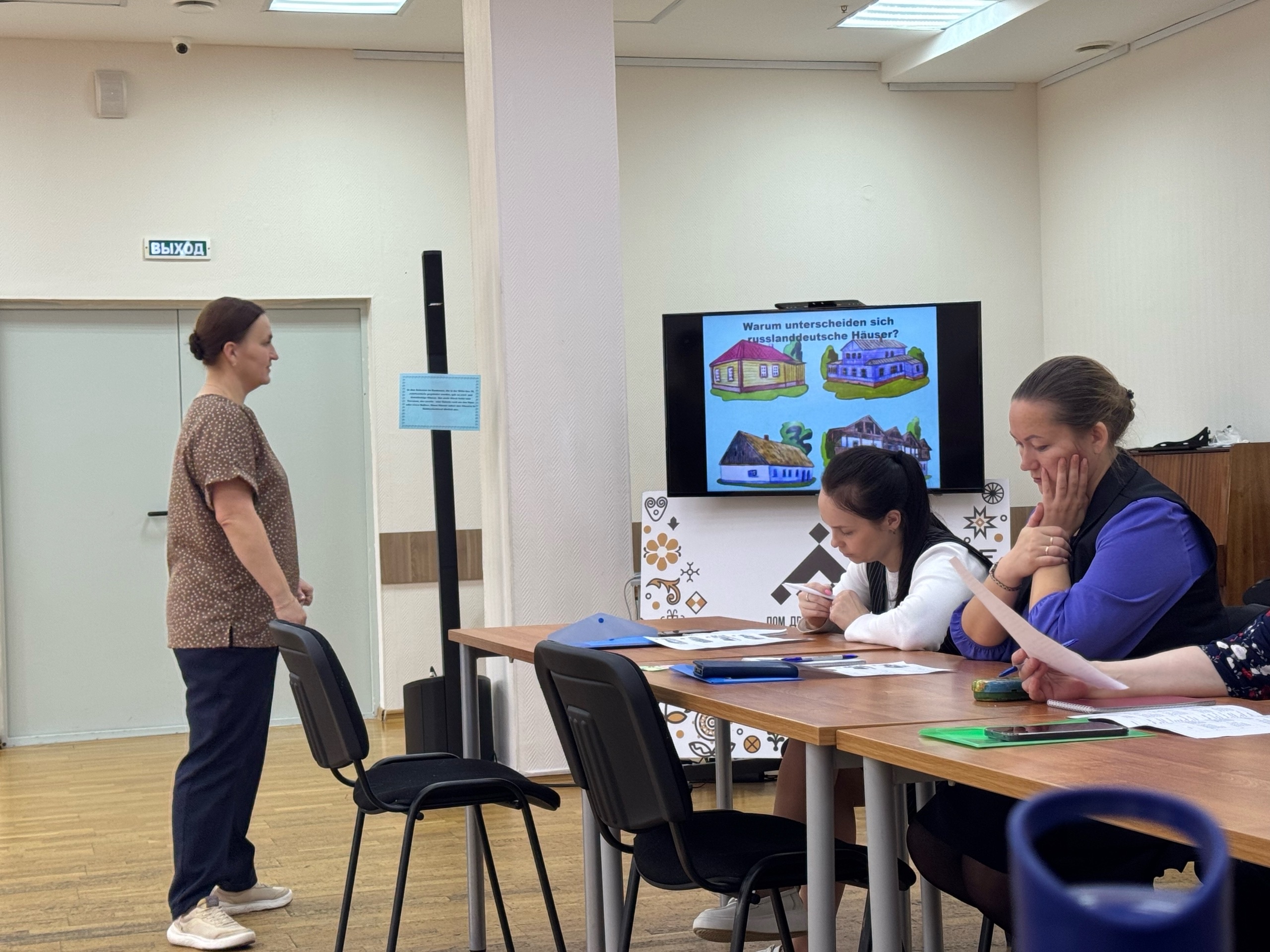 3 и 4 октября в Доме дружбы народов прошёл семинар для учителей немецкого языка, преподавателей этнокультурных кружков и студентов языковых факультетов «Interaktiv Deutsch lehren» («Интерактивное обучение немецкому языку»). Студенты англо-немецкого направления Института иностранных языков Алиса Быблив (гр. 1041п-АНо), Мария Кривенко (гр. 1041п-АНо) и София Штельц (гр. 1031п-АНо) откликнулись на приглашение и окунулись в непринуждённую атмосферу творчества и интерактивных занятий на немецком языке.