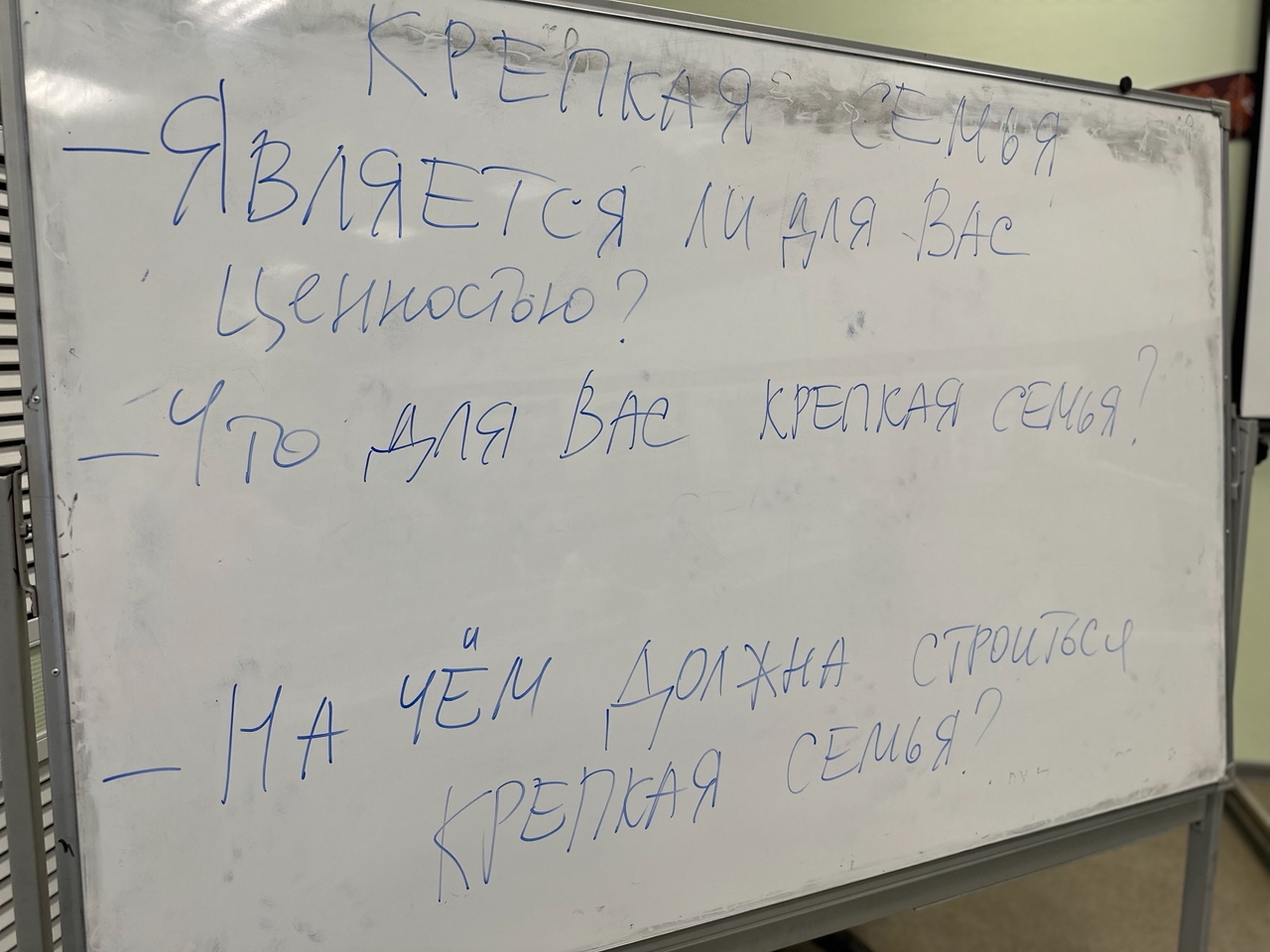 Чтобы закрепить дискуссию, модераторы предложили студентам ответить на вопрос «Что такое семья?» Участники в группах сформулировали свои определения и зачитали их вслух. В ответах звучали слова «поддержка», «доверие», «любовь». Многие подчеркивали, что семья — это союз мужчины и женщины, что вызвало живой отклик в аудитории.