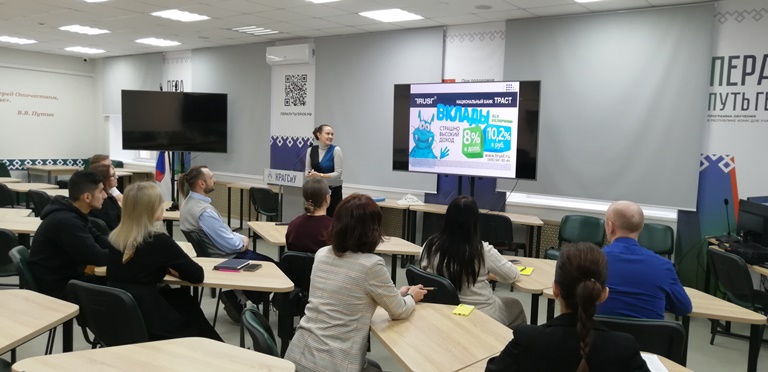 Во второй части дня образовательный формат сменился на интерактивный: слушатели приняли участие в деловой игре, которая прошла в стенах Регионального центра повышения финансовой грамотности. На практике они отработали навыки финансового планирования и взаимодействия в условиях рыночной конкуренции, продемонстрировав эффективную командную работу и высокую слаженность действий.