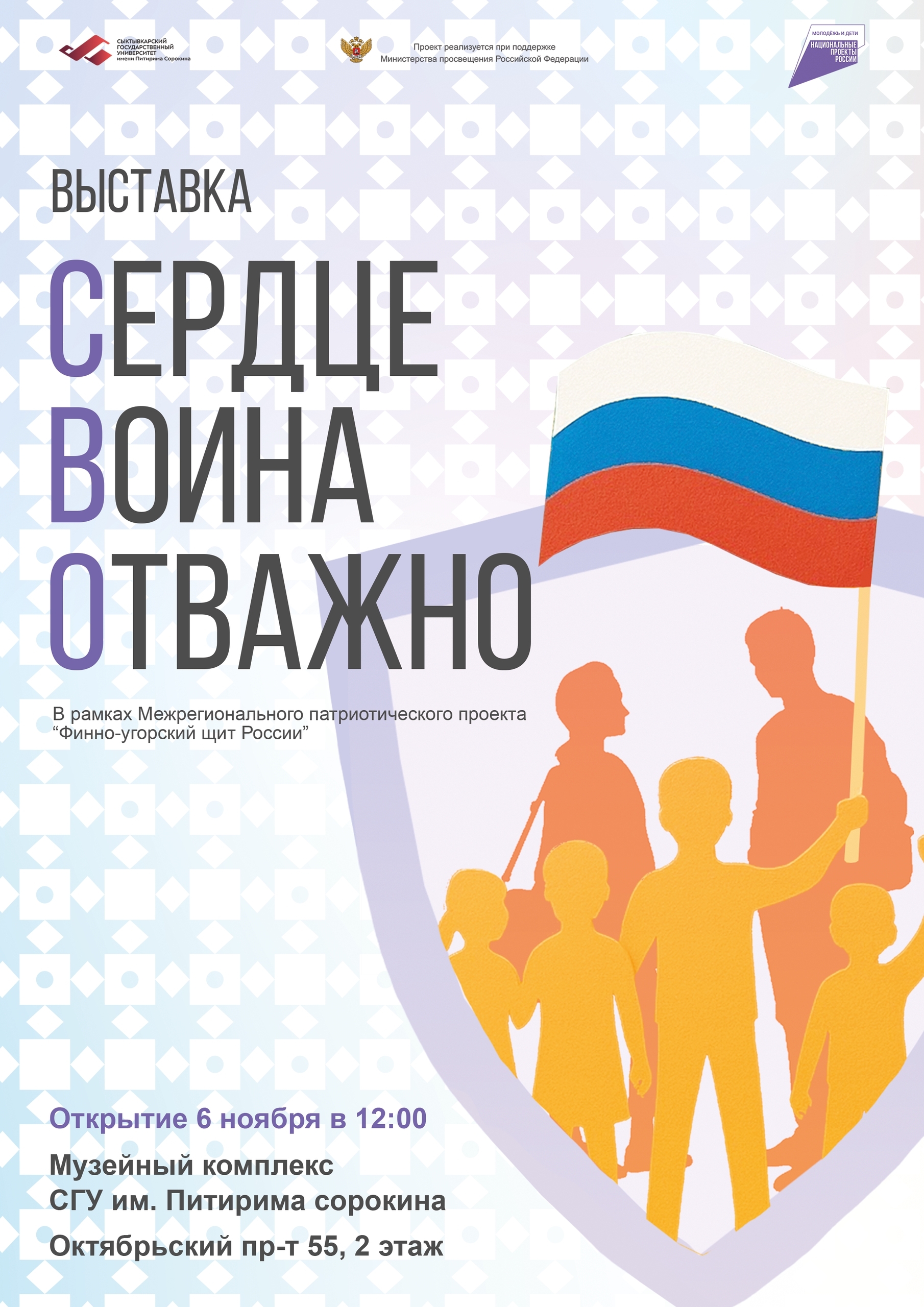 Мероприятие проходит в рамках Межрегионального патриотического проекта "Финно-угорский щит России". На выставке вы познакомитесь с лентой времени, которая раскрывает историю СВО и экспонатами, предоставленными благотворительной организацией "Добрая Республика".