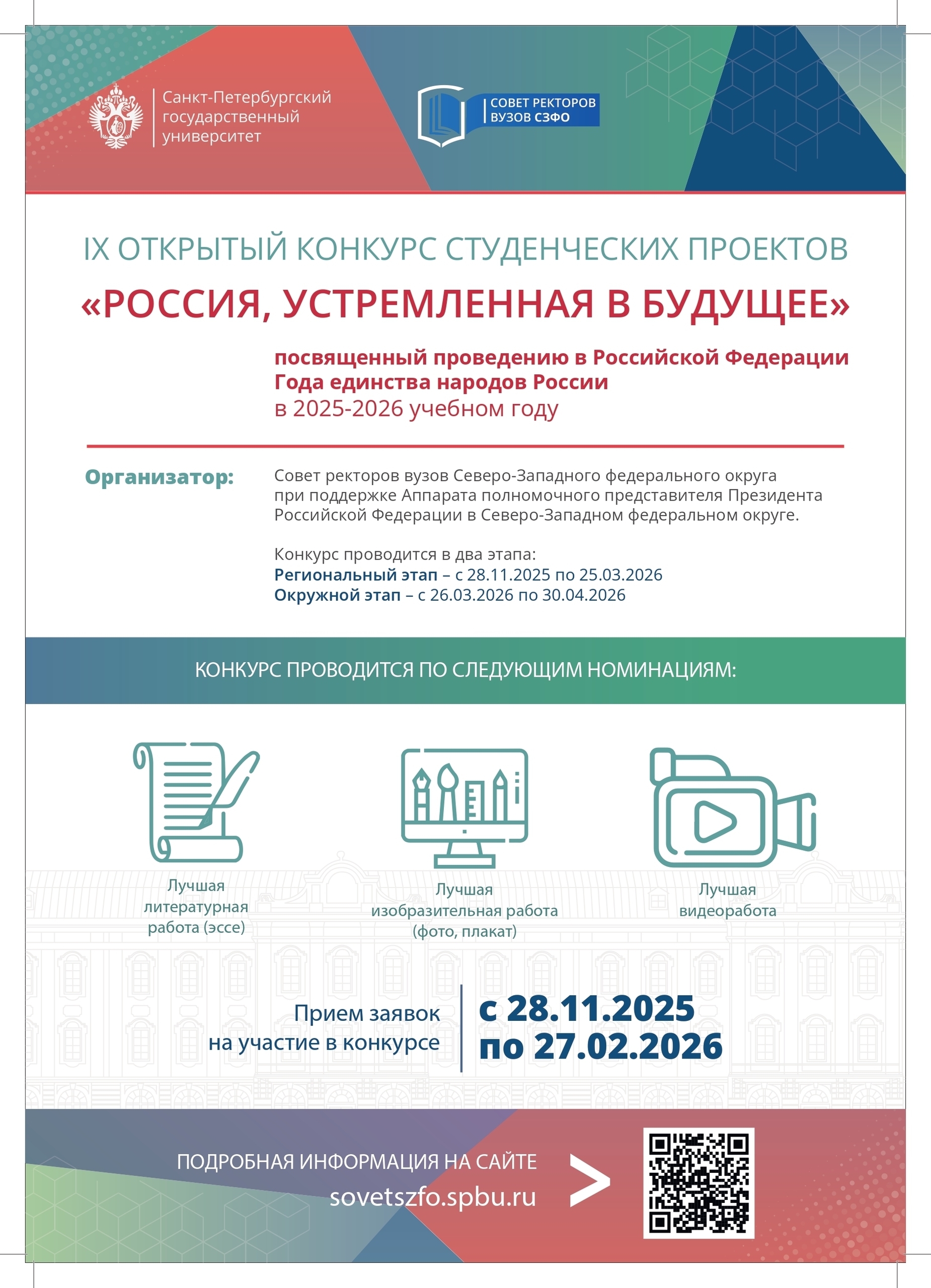 Подробности по ссылке: https://sovetszfo.spbu.ru/meroprijatija-i-novosti/rossija-ustremlennaja-v-budushhee-2/ и в положении.