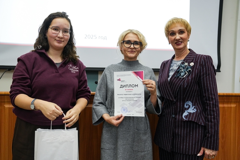 II место – СНО Института педагогики и психологии (председатель – Козлова Ольга, студентка 4 курса; куратор – Шабанова Елена Николаевна, к. п. н., доцент).