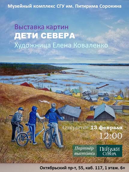 Уважаемые коллеги, дорогие друзья! Мы к вам с замечательной новостью – в Музее истории просвещения Коми края открывается выставка «Дети Севера». Партнером выставки выступила городская галерея «Пейзажи Севера».