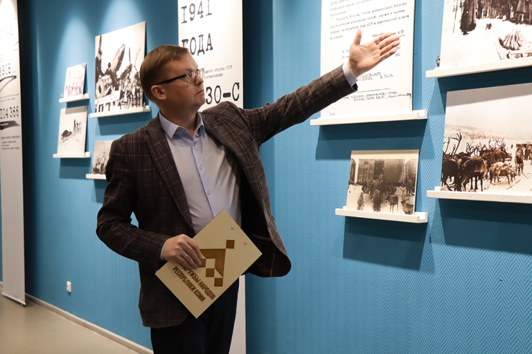 Первая часть мероприятия прошла в формате экскурсии по уникальной выставке «Память оленных батальонов: история подвига народов Севера». Для ребят ее лично провел директор Дома дружбы народов Григорий Хатанзейский.