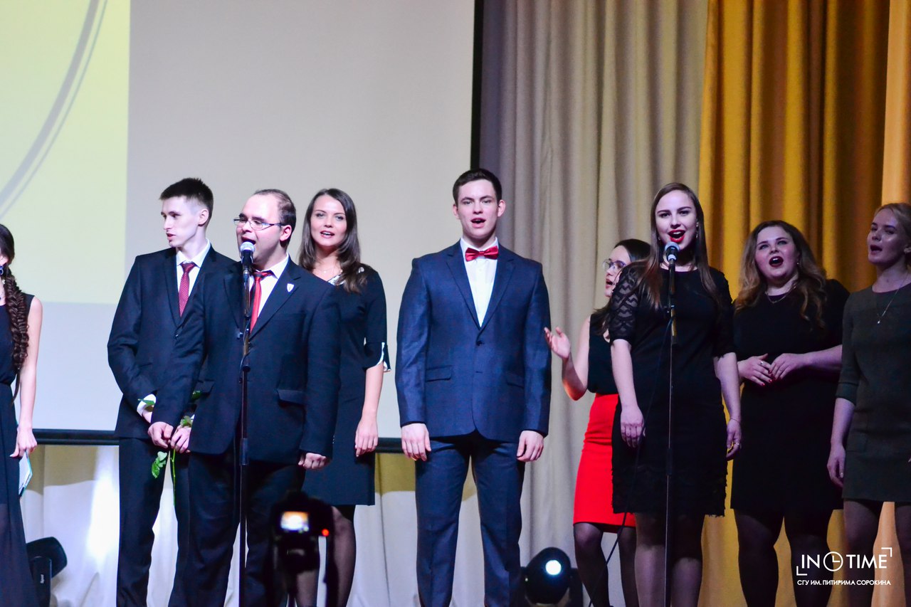 В субботу, 8 апреля, в восьмом корпусе СГУ им. Питирима Сорокина состоялся праздничный концерт в честь Дня Юридического института. Зажигательные песни и танцы, борьба за кубок Стэнли, церемония вручения музыкальной премии Грэмми — все это ждало зрителей в концертном зале Сыктывкарского университета.
