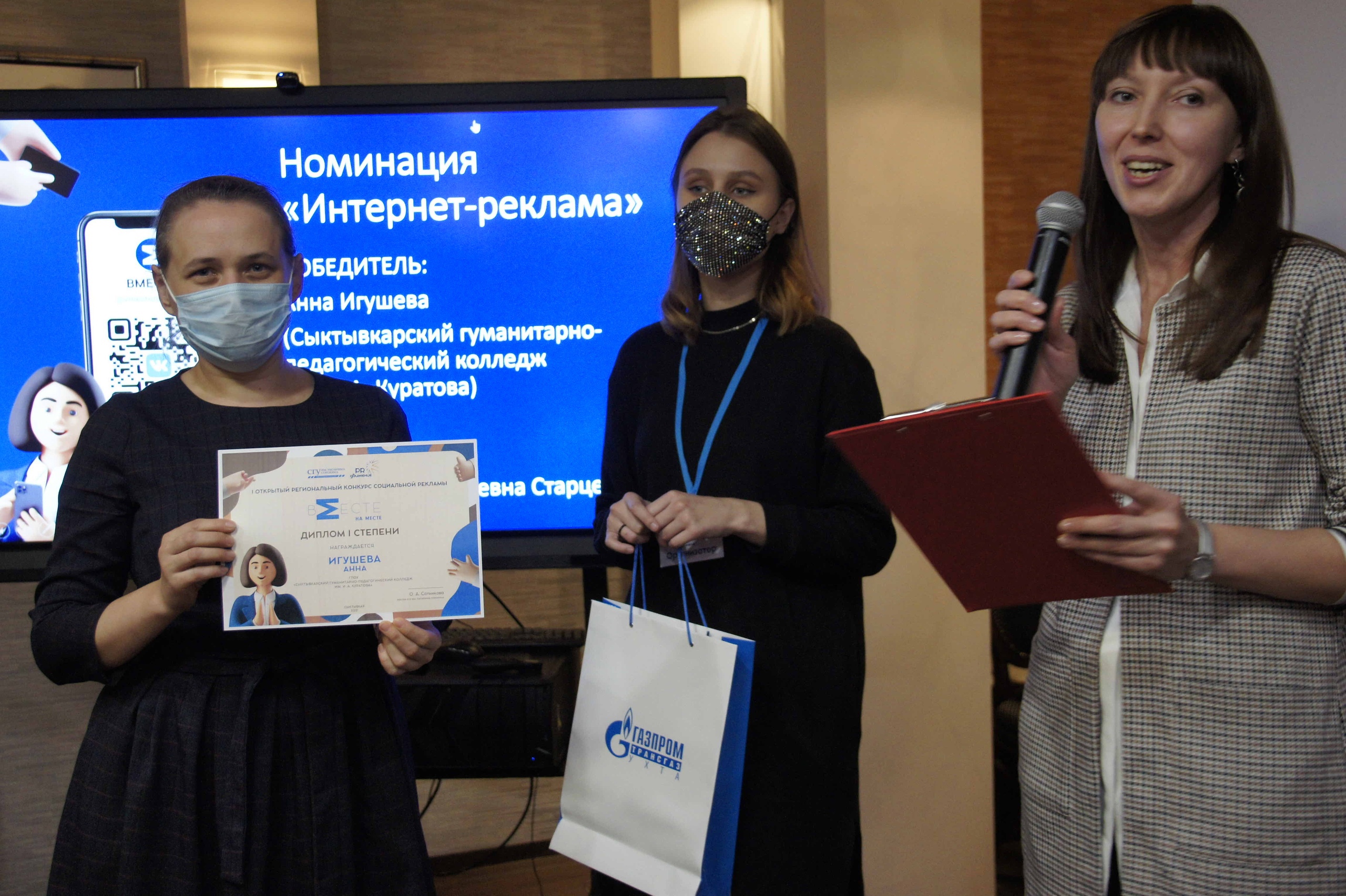 Итоги конкурса, как и было заявлено в положении, подвели в рамках финала VI Открытого регионального конкурса студенческих проектов в области развития общественных связей «PR-движение». Результаты огласила Ирина Лейман, заведующий кафедрой связей с общественностью и рекламы СГУ им. Питирима Сорокина.