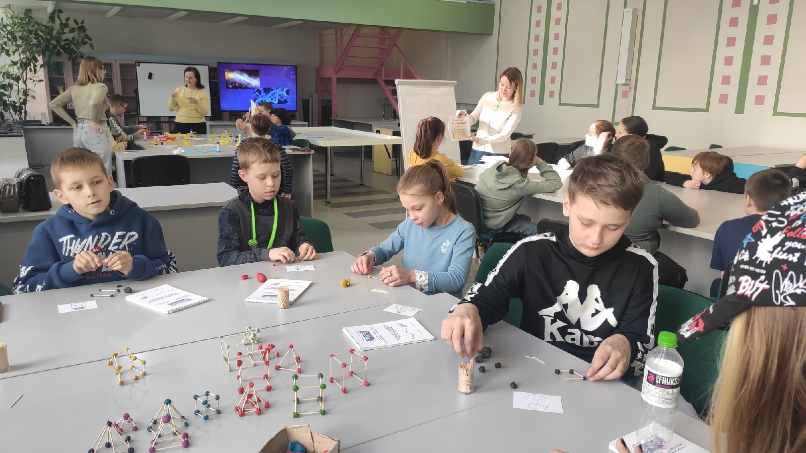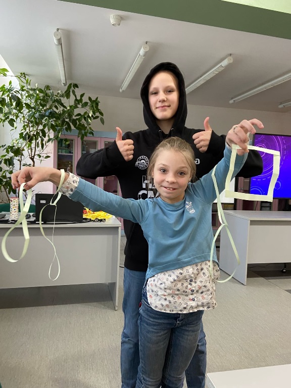 1,5 часа активного погружения в «Заниматику» позволили ребятам создать свой пространственный объект, склеить ленту Мебиуса и выучить самые популярные пословицы и поговорки на английском языке.