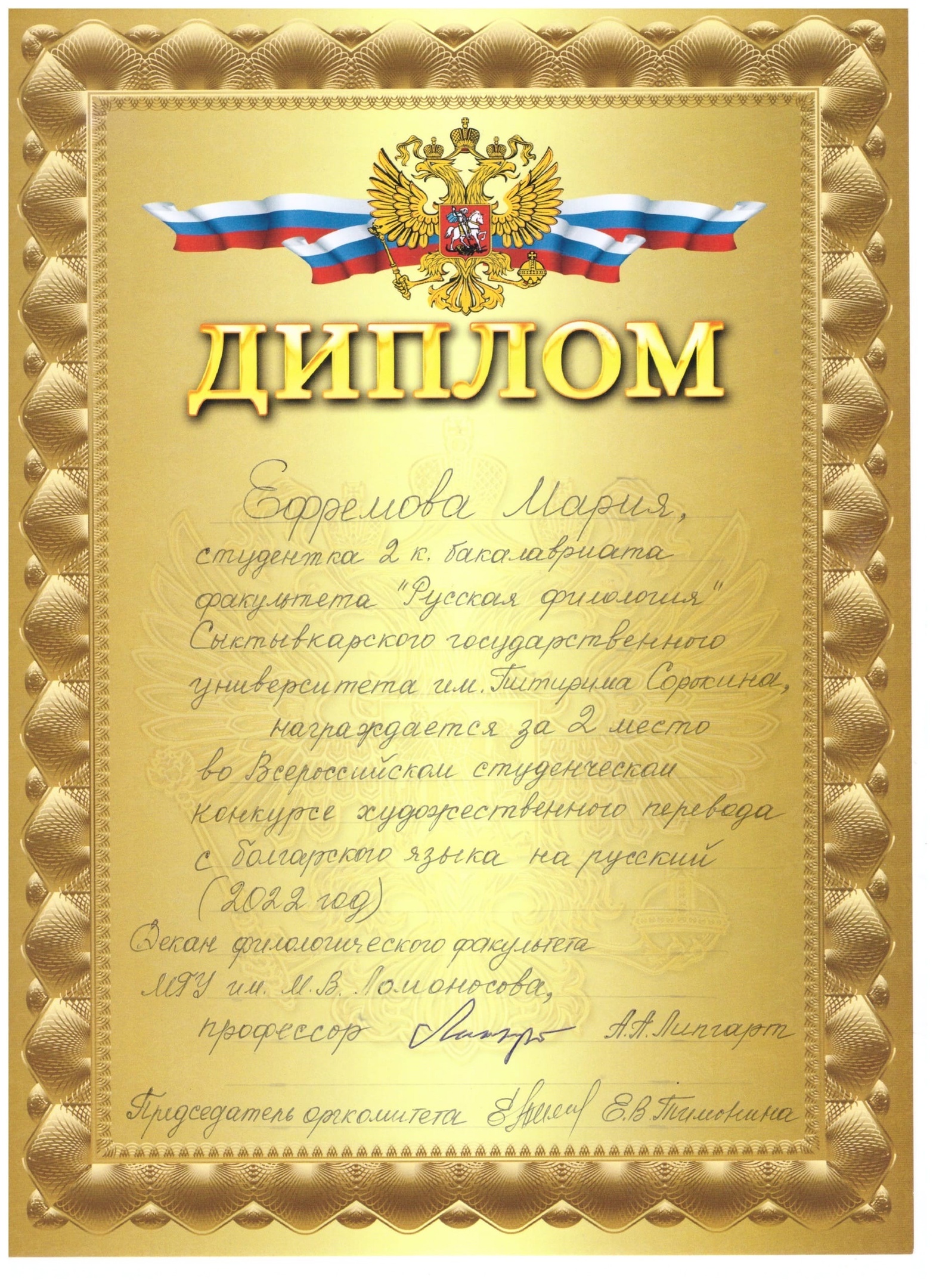 Студентка СГУ им. Питирима Сорокина стала призером Всероссийского конкурса перевода с болгарского языка