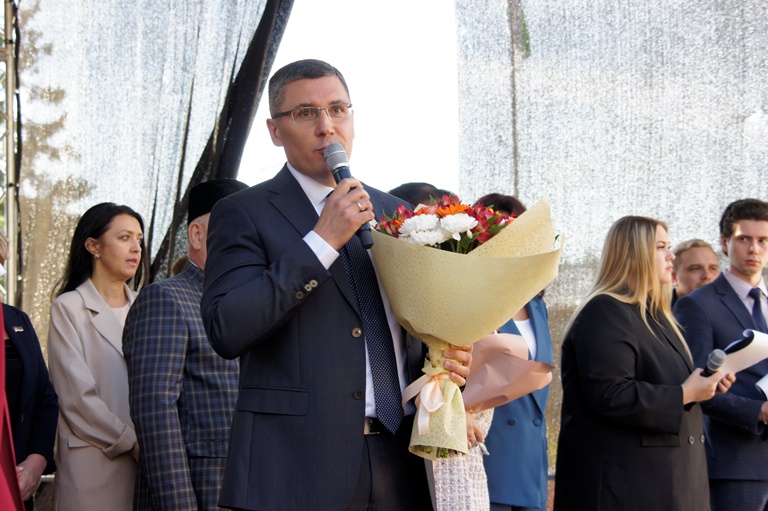 — Хочу поздравить всех вас, дорогие студенты, преподаватели и сотрудники вуза! Первокурсники, еще вчера вы были школьниками, а уже совсем скоро станете высококлассными специалистами. Желаю вам успеха, старательно учитесь ради мира на земле. Мы гордимся нашим университетом! Вы сделали правильный выбор, потому что здесь вы проведете лучшие годы своей жизни.