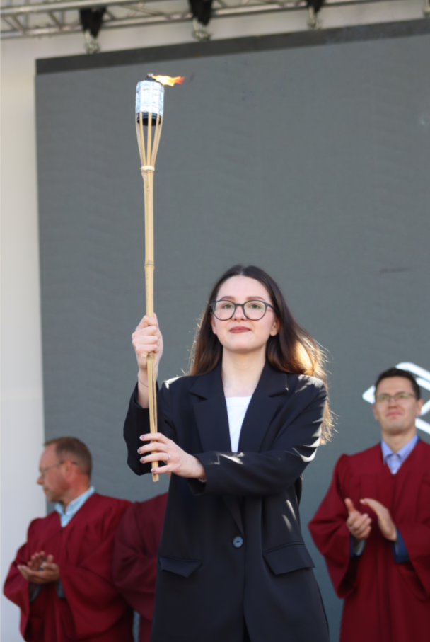 После поздравлений новоиспеченные студенты произнесли клятву первокурсника. Учебный год для студентов стартовал с зажжения Факела Знаний. С этого момента новый учебный год официально считается открытым.