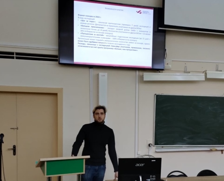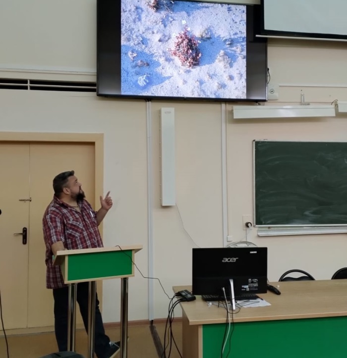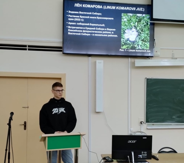 Первый день мероприятия был посвящен биоэкологическим аспектам. С докладами выступили: доцент кафедры экологии и геологии, и.о. директора Института естественных наук Сергей Плюснин (тема доклада – «Лихенобиота предгорных ландшафтов Полярного Урала»), заведующий кафедрой экологии и геологии Юрий Бобров («Некоторые особенности флоры высших растений двух частей острова Вильчека») и студент бакалавриата по направлению «Биология» (группа 231-БЛо) Игорь Табачков («Интродукция редких видов растений рода Línum L. в Ботаническом саду СГУ им. Питирима Сорокина как способ сохранения и обогащения разнообразия растений на Севере»). В завершении первого дня с кратким докладом вне рамок конференции выступил младший научный сотрудник Центра активного долголетия и преподаватель кафедры экологии и геологии Никита Журавлев, познакомив присутствовавших студентов с возможностью участия в конкурсе «Открываем Россию заново» и опыте экспедиции кафедры экологии и геологии в Усть-Куломском районе в октябре 2023 г.
