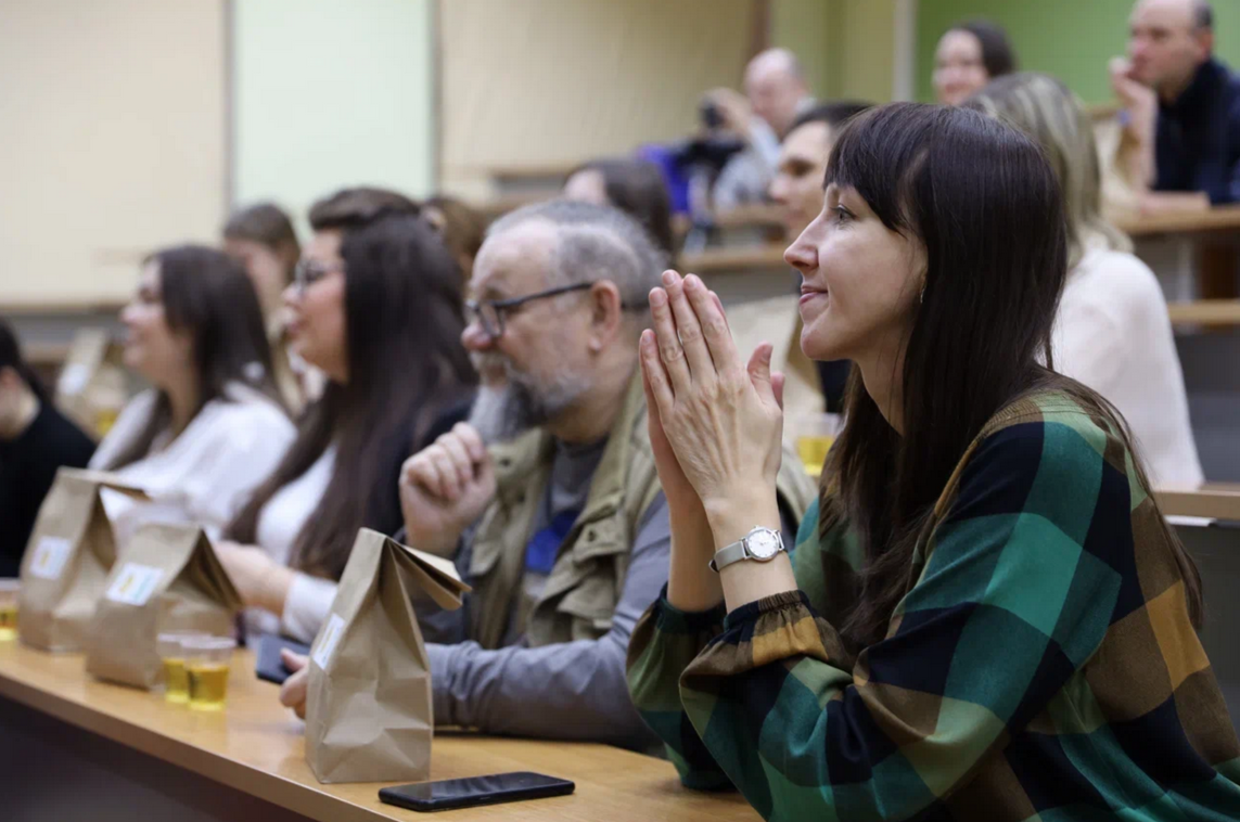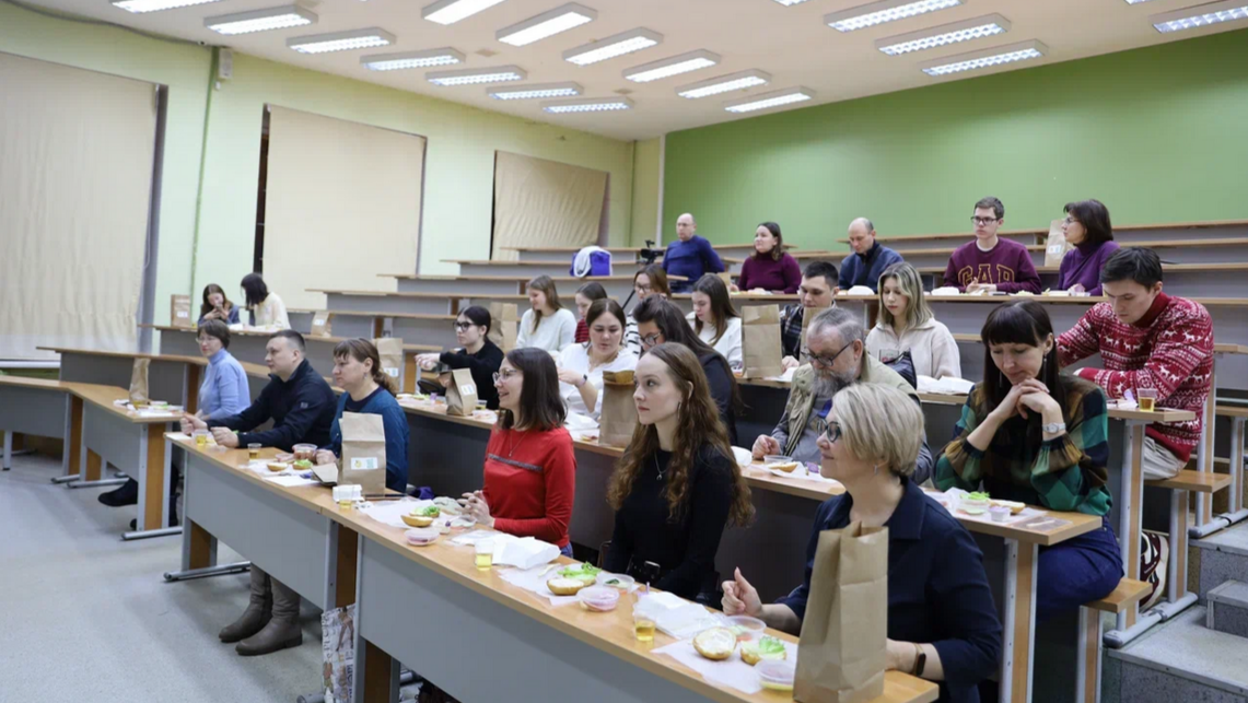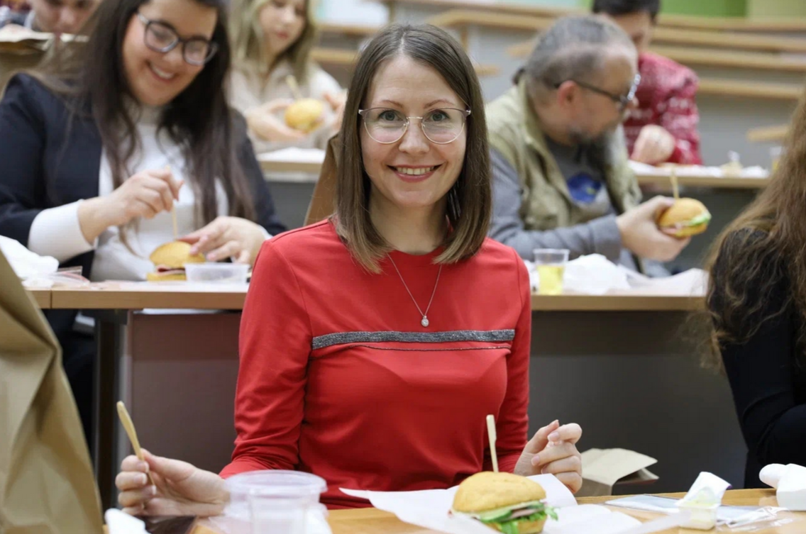 По классике, после теории должна идти практика. Этот мастер-класс не стал исключением. Юлия заранее подготовила 35 наборов с ингредиентами – для каждого участника. В него вошли продукты для приготовления сэндвича.