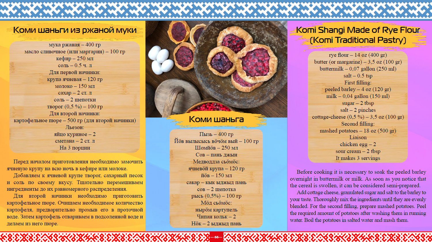В СГУ имени Питирима Сорокина обучаются студенты из разных стран, многие из которых хорошо владеют английским языком, но испытывают трудности при чтении русскоязычных материалов. Благодаря переводам эссе и рецептов с русского на английский язык, выполненным будущими учителями коми и английского языков, наши зарубежные обучающиеся узнают, что в регионе, в котором они в настоящее время проживают, ценятся обычаи и традиции, сохраняются старинные рецепты, не теряется связь с прошлым, используется опыт предков и проводятся этнические фестивали. Вкус приходит во время еды, но для тех, кто владеет и русским, и коми и английским языками, этнические блюда, представленные в нашей брошюре, покажутся не просто аппетитными, а вкуснейшими втройне, потому что знание языков развивает ваш вкус, — подчеркивают создатели буклета.