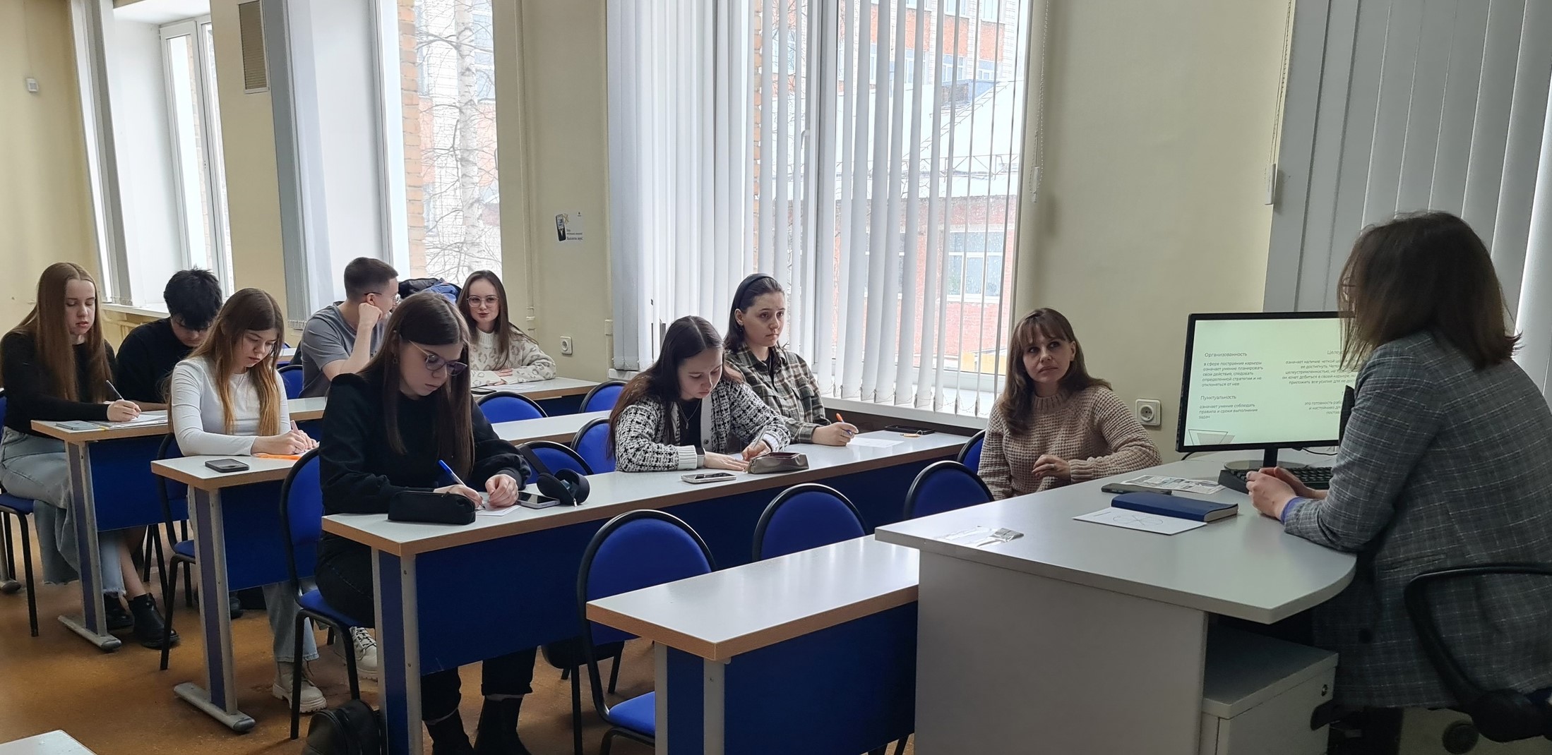 Сегодня важно не только получать знания по своей специальности, но и развивать «мягкие навыки», которые помогают найти свое место в жизни, построить гармоничные отношения с окружающими и достичь успеха в карьере. 8 апреля психолог АНО «Агентство развития карьеры» Екатерина Пигулина провела со студентами вторых и третьих курсов Института гуманитарных наук занятие на тему «Современный мир и карьерный баланс».