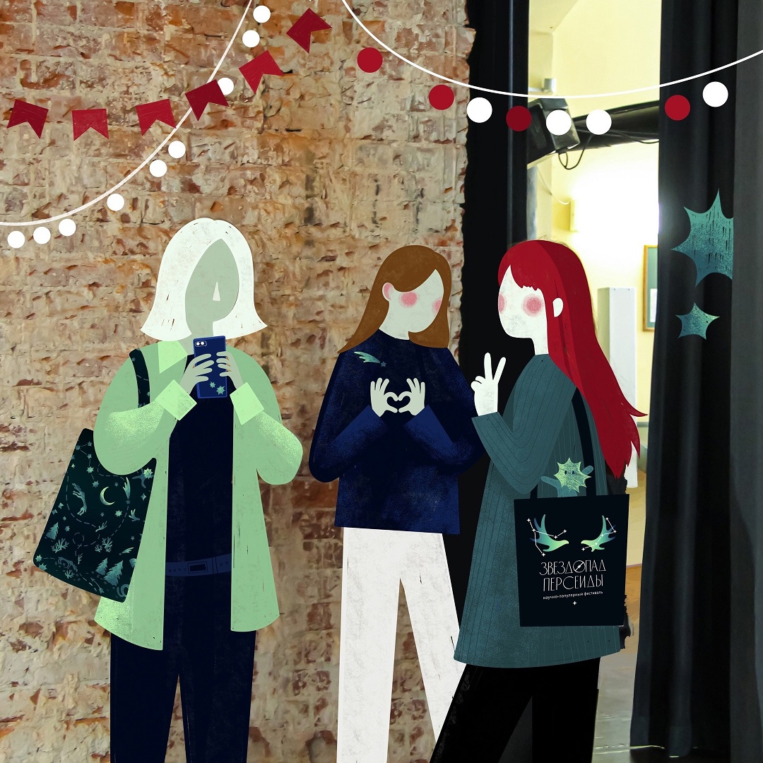 – Рога лося на логотипе фестиваля декорировала звездами, которые образуют два основных созвездия Персей и Кассиопея. Именно они во время звездопада служат ориентиром на звездном небе, – объясняет молодой дизайнер. – Основные цвета проекта тоже символичны. Это градиент темно-синего, бирюзово-синего и светло-зеленого. Оттенки символизируют красоту и загадочность северного сияния.