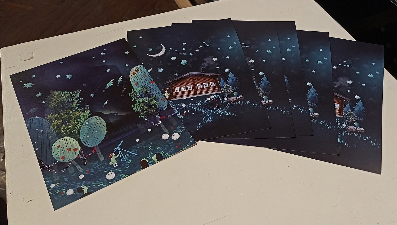 Наравне с логотипом Елизавета разработала художественный ряд, который организаторы проекта использовали при оформлении площадок, а также афиш, стендов, открыток и групп в соцсетях. Кстати, отправить уникальную открытку можно будет в почтовом пункте посткроссинга. Он расположится 10 августа на площадке во дворе Дома-музея им. И.П. Морозова с 18:00 до 19:00.