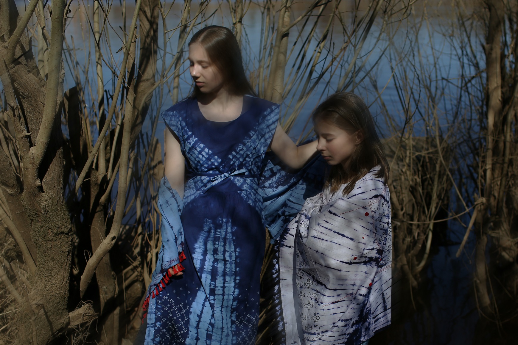 Аналогичную технику крашения и нанесения набойки ручным способом использовала, декорируя палантины. В целом коллекция «Асланым» – это мое впечатление от зырянского традиционного костюма, его декоративных составляющих, техник изготовления.