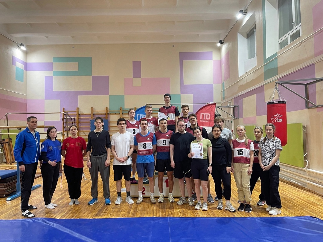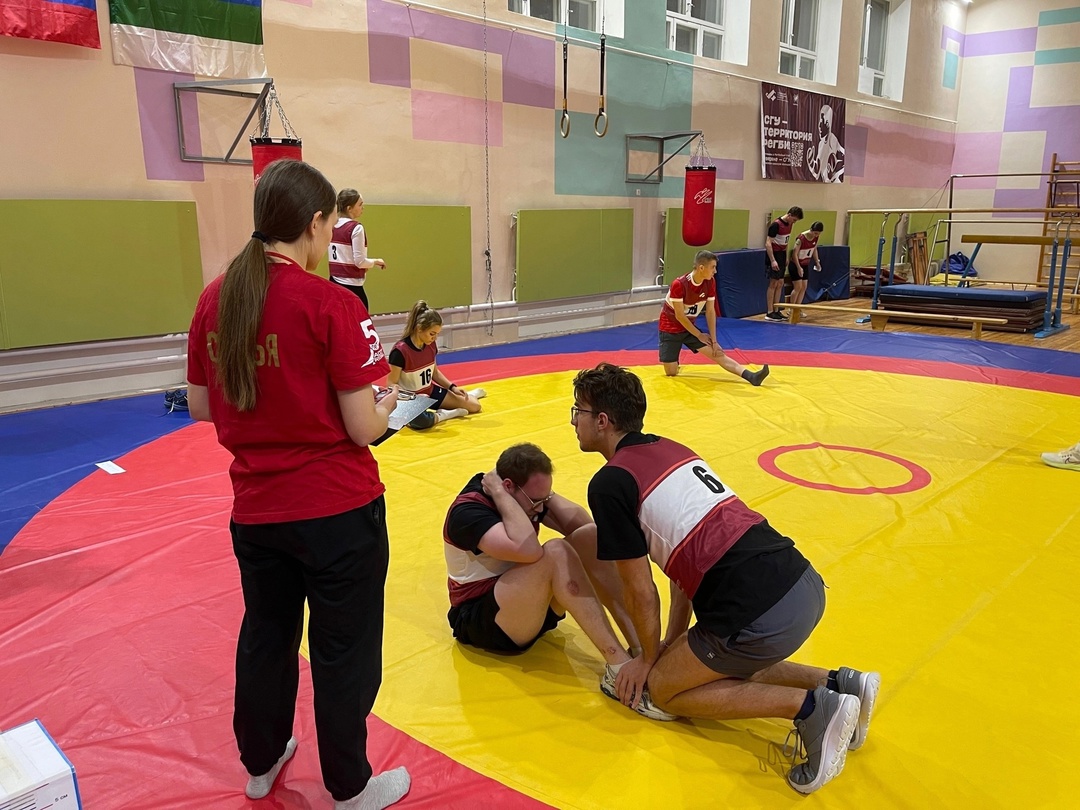 Студенты выполнили программу Многоборья ГТО. Участникам предстояло выполнить зальные виды испытаний ГТО, такие как подтягивание на высокой перекладине, сгибание и разгибание рук в упоре лежа на полу, выполнить наклон, прыжок в длину с места, рывок гири 16 кг, поднимание и опускание туловища из положения лежа, подтягивание на низкой перекладине.