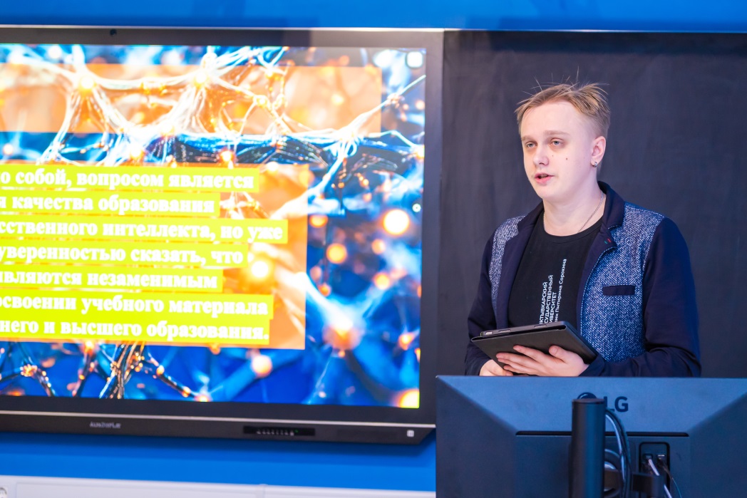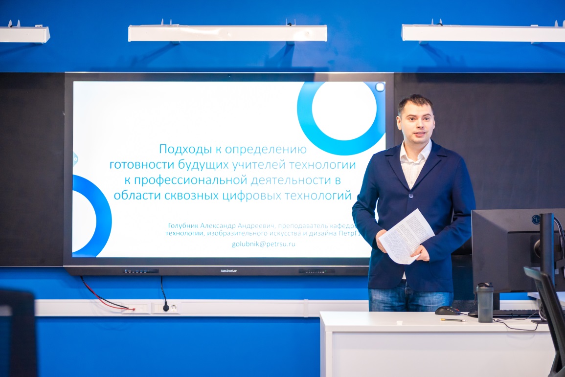 В работе секции «Методология и технология профессионального образования» (21 февраля) кроме аспирантов и преподавателей кафедры технологического и профессионального образования Института точных наук и информационных технологий СГУ имени Питирима Сорокина принял участие преподаватель Петрозаводского государственного университета Александр Голубник, который представил доклад на тему «Подходы к определению готовности будущих учителей технологии к профессиональной деятельности в области сквозных цифровых технологий».