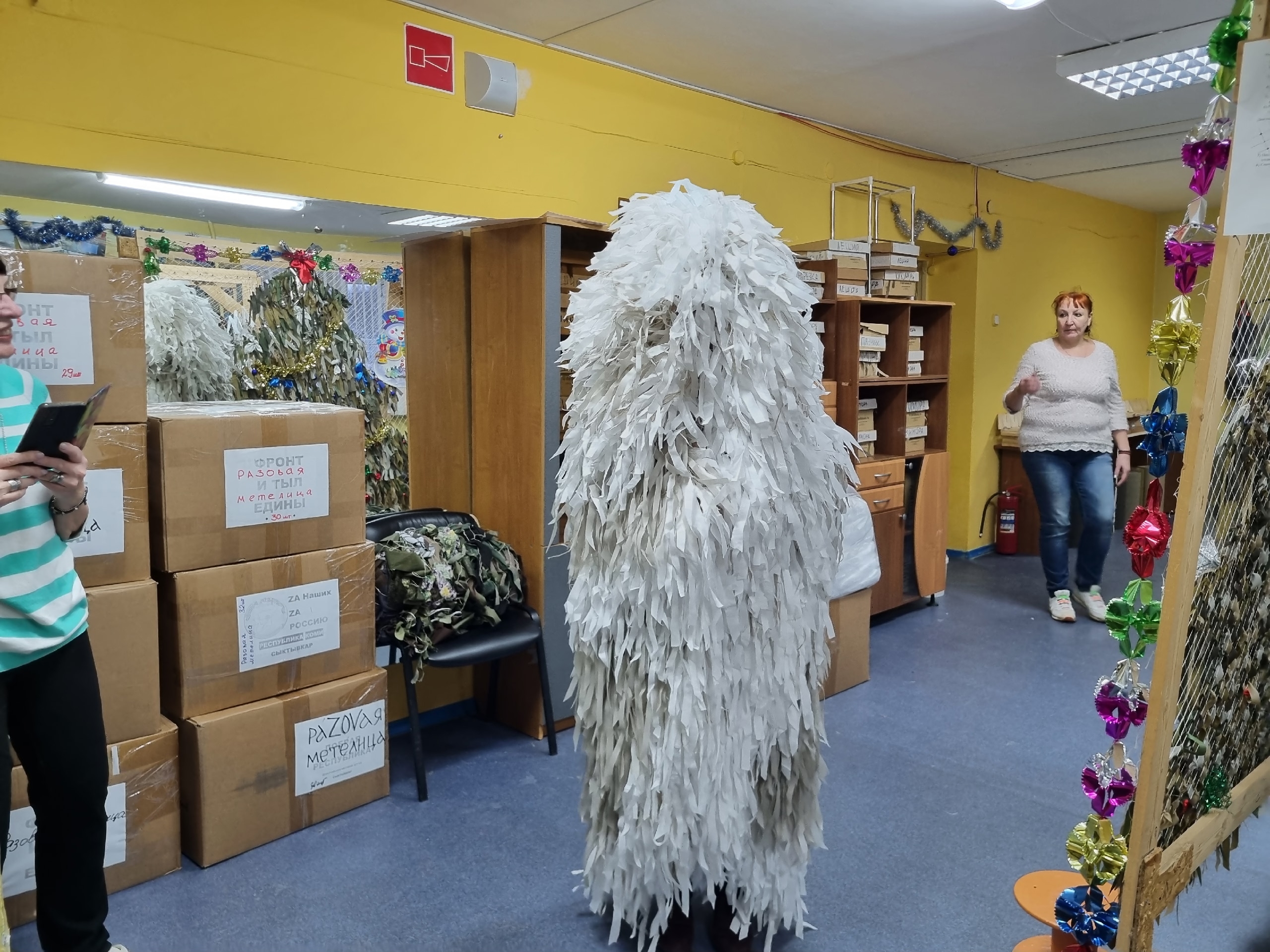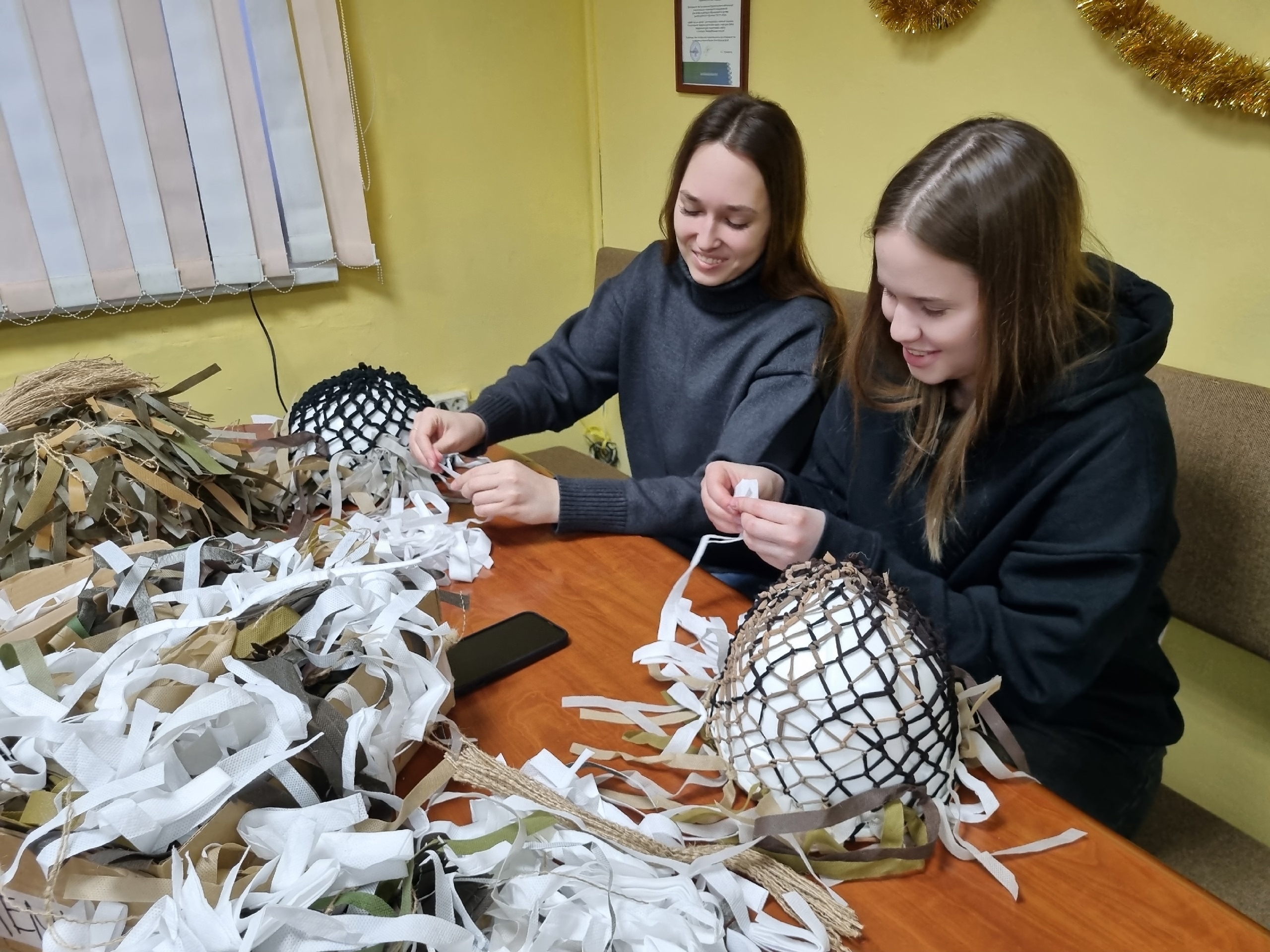 А прямо в штабе кипела своя работа: умелые руки сплели 3 нашлемника и подготовили материал для зимнего маскировочного костюма «Леший».