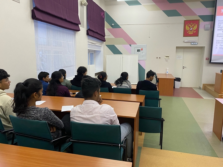 Первый день в чужой стране — всегда волнительный, поэтому встреча для иностранных гостей началась с погружения в правовые и организационные аспекты предстоящей учебы. Начальник международного отдела Светлана Обшанская подробно разъяснила слушателям ключевые требования миграционного законодательства. Для ребят, только начинающих знакомство с российской системой образования, этот блок стал важнейшей опорой: четкие правила, обязанности и понимание своих прав создают фундамент спокойной и уверенной адаптации.
