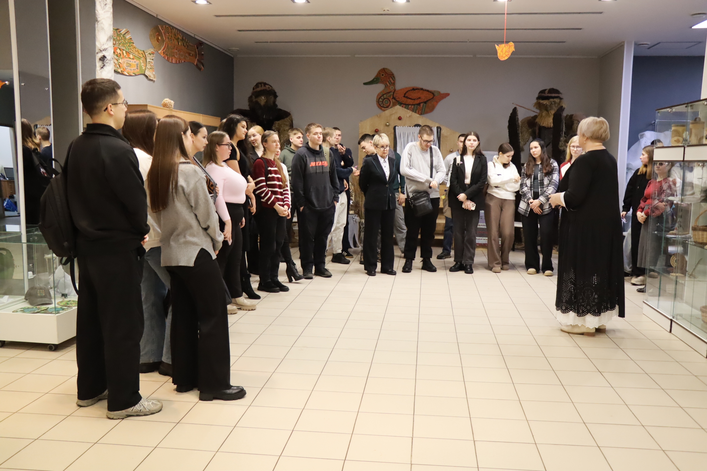 Первая часть мероприятия прошла в формате экскурсии по уникальной выставке «Память оленных батальонов: история подвига народов Севера». Для ребят ее лично провел директор Дома дружбы народов Григорий Хатанзейский.