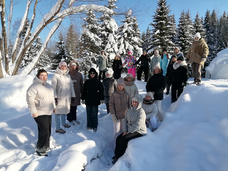 Глебова Евгения (441-ДОз): «Недавно наша группа вместе с преподавателем, Агатой Юрьевной совершили необычное путешествие в Ботанический сад. Несмотря на морозный день, сад встретил нас своей особой, величественной красотой: заснеженные аллеи, покрытые инеем деревья и умиротворяющая тишина, создали по-настоящему сказочную атмосферу. Но самым ярким впечатлением стала вторая половина нашей прогулки. Мы вспомнили детство и сыграли в детские подвижные игры. Мы много смеялись и с азартом играли, и даже пытались строить снежные фигурки. Это посещение запомнится надолго! Огромное спасибо Агате Юрьевне за такой креативный подход к учебному процессу! Всем советуем посещать Ботанический сад зимой - это красиво, а в хорошей компании еще и невероятно весело!».