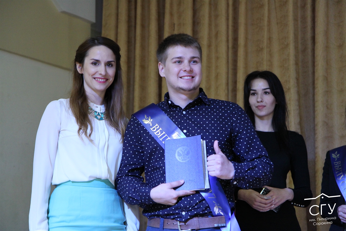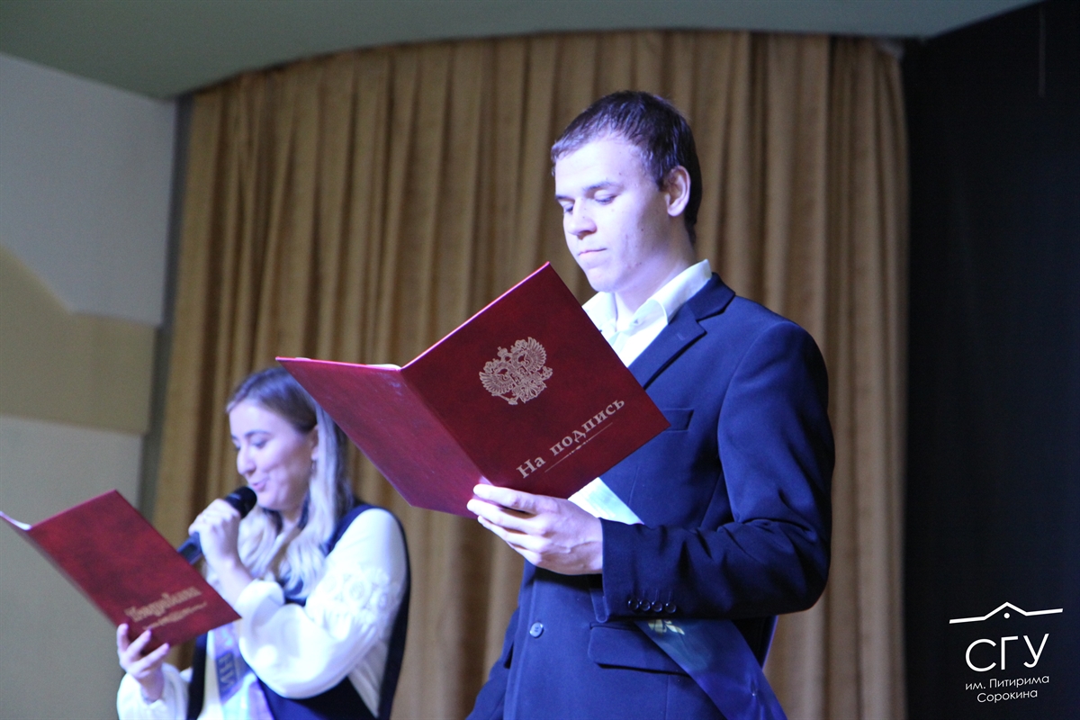 По традиции института ведущими стали сами выпускники: Дарья Тетерина, направление «Филология», и Егор Пунегов, направление «Политология». В этом году 4 корпус СГУ им. Питирима Сорокина выпустил 132 студента, 102 из которых обучались по очной программе. Всего дипломы получили 11 выпускных групп. Самой многочисленной из них оказалась 344 группа, направление «Журналистика», и только 1 студент-магистр представлял направление «Политология».