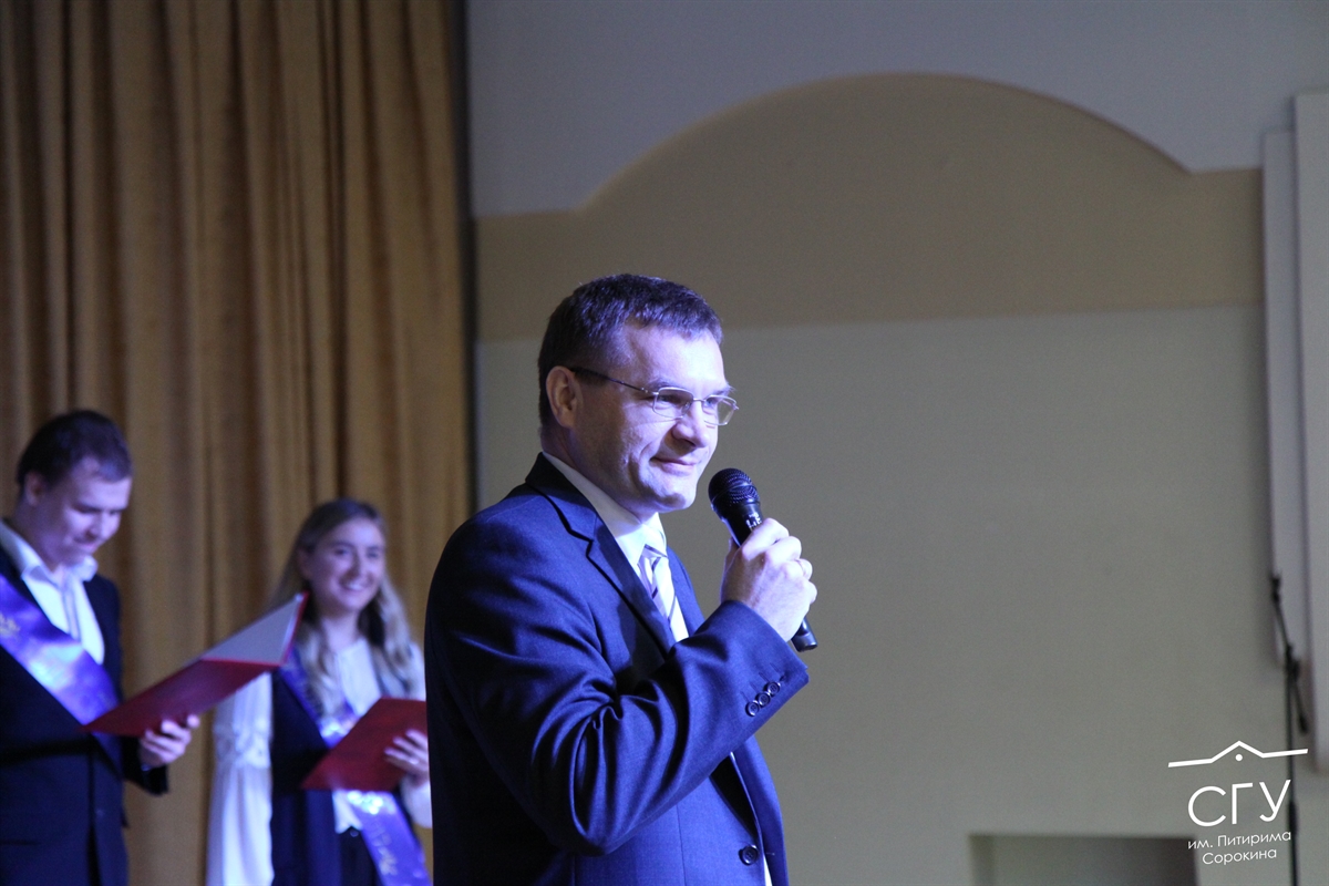 - Я понимаю, насколько волнителен этот момент. Для меня в том числе, потому что я никогда не мог предположить, что спустя 20 лет после окончания университета буду вручать выпускникам дипломы. В канун встречи я поднял статистику о том, сколько выпускников СГУ им. Питирима Сорокина трудоустроены на телеканале. Оказывается, 1/3 уже формирует региональный телеэфир. Хочу пожелать, чтобы вы нашли себя в той профессии, азы которой изучали здесь долгие годы, - поделился Александр Кузнецов.