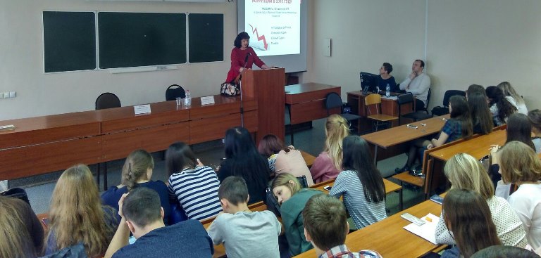 Приведенные примеры проявления «бытовой» коррупции были дополнены демонстрацией видеороликов, которые вызвали живое обсуждение в аудитории. В заключение студентам были даны практические рекомендации, какие шаги следует предпринять при склонении к коррупционным действиям.