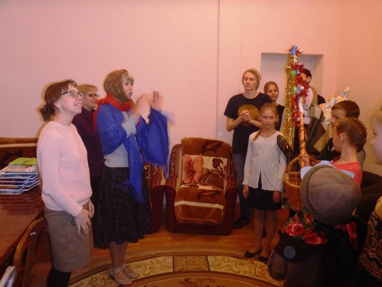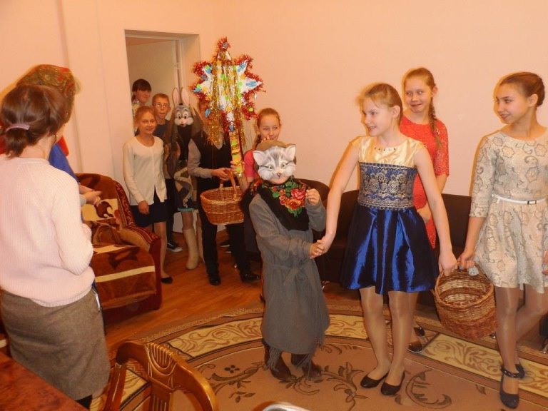 Инициаторами встречи выступили преподаватели кафедры русской филологии – завкафедрой Татьяна Бунчук, замдиректора ИГН Юлия Ильина и проректор по учебной работе СГУ им. Питирима Сорокина Ольга Кушнир. К ним присоединились студенты 331 группы – Дарья Матасова, Ольга Наумова, Алексей Дуркин и Владислав Ентус. Филологи провели мастер-класс по изготовлению рождественской звезды, рассказали присутствующим о Рождестве и святках, вместе с воспитанниками детского дома разучили колядки, помогли им преобразиться в ряженых и научили детей колядовать. Самые активные ребята наколядовали сладости и канцелярские принадлежности.