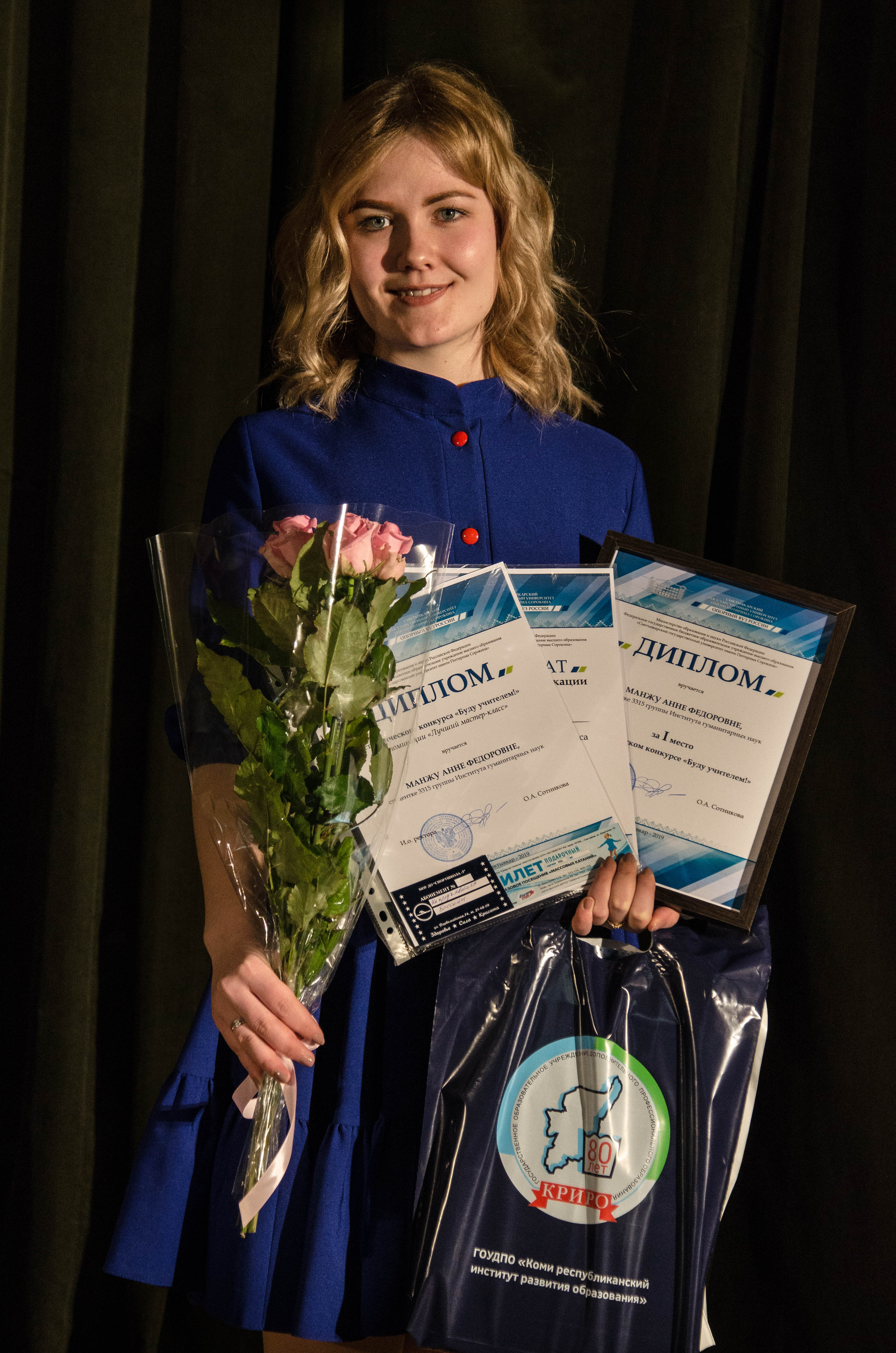 Дипломом за 3 место в студенческом конкурсе «Буду учителем!» награждена Марина Куклина, студентка 6415 группы ИПиП, диплом за 2 место вручен Евгении Каневой, студентке 1315 группы ИТНиИТ. Победителем студенческого конкурса «Буду учителем!» признана Анна Манжу, студентка 3315 группы ИГН.