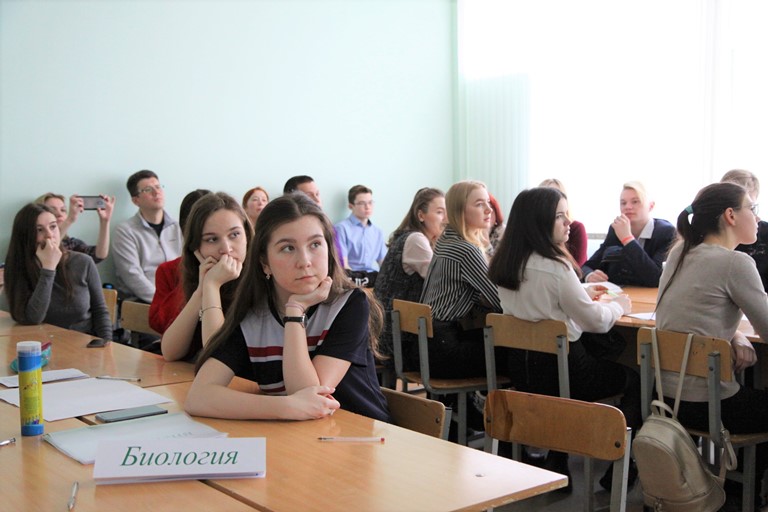 Вторую часть мероприятия провела доцент кафедры биологии Ольга Газизова. Она организовала для учеников старших классов деловую игру «Профессия будущего», состоящую из трех этапов: «Хочу, могу, надо», «Новые востребованные профессии естественной предметной области», «Надпрофессиональные навыки в профессиях».